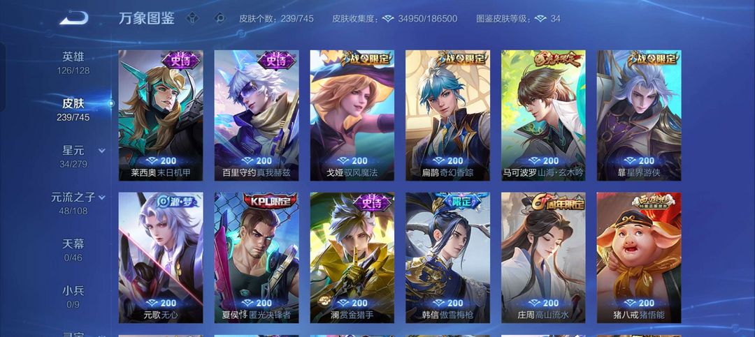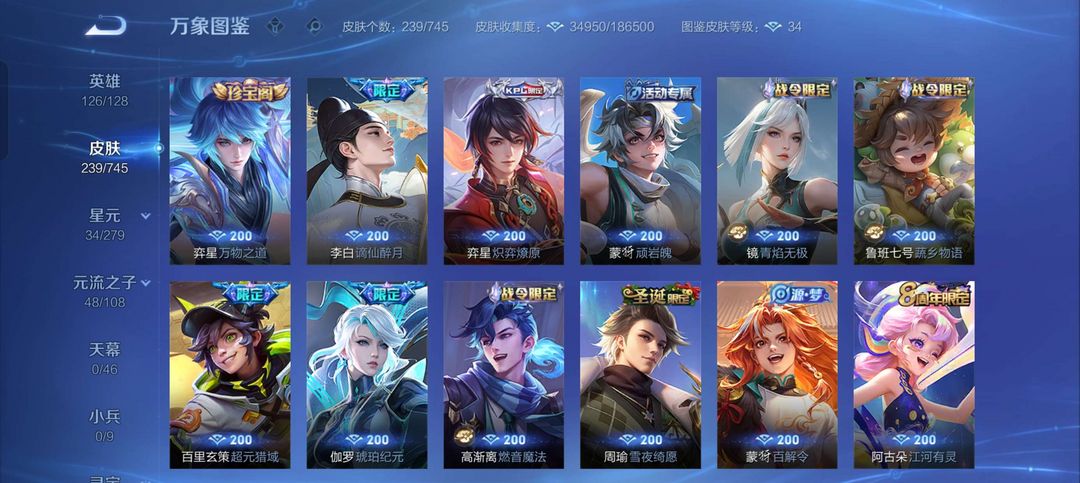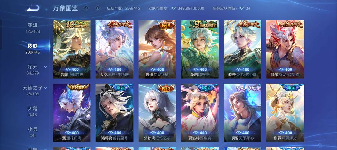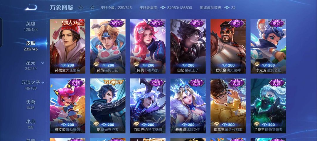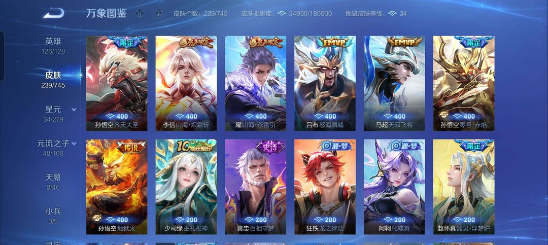 齐天大圣,苍雷引,怒海麟威,无双飞将,炽霜斩,超多皮肤