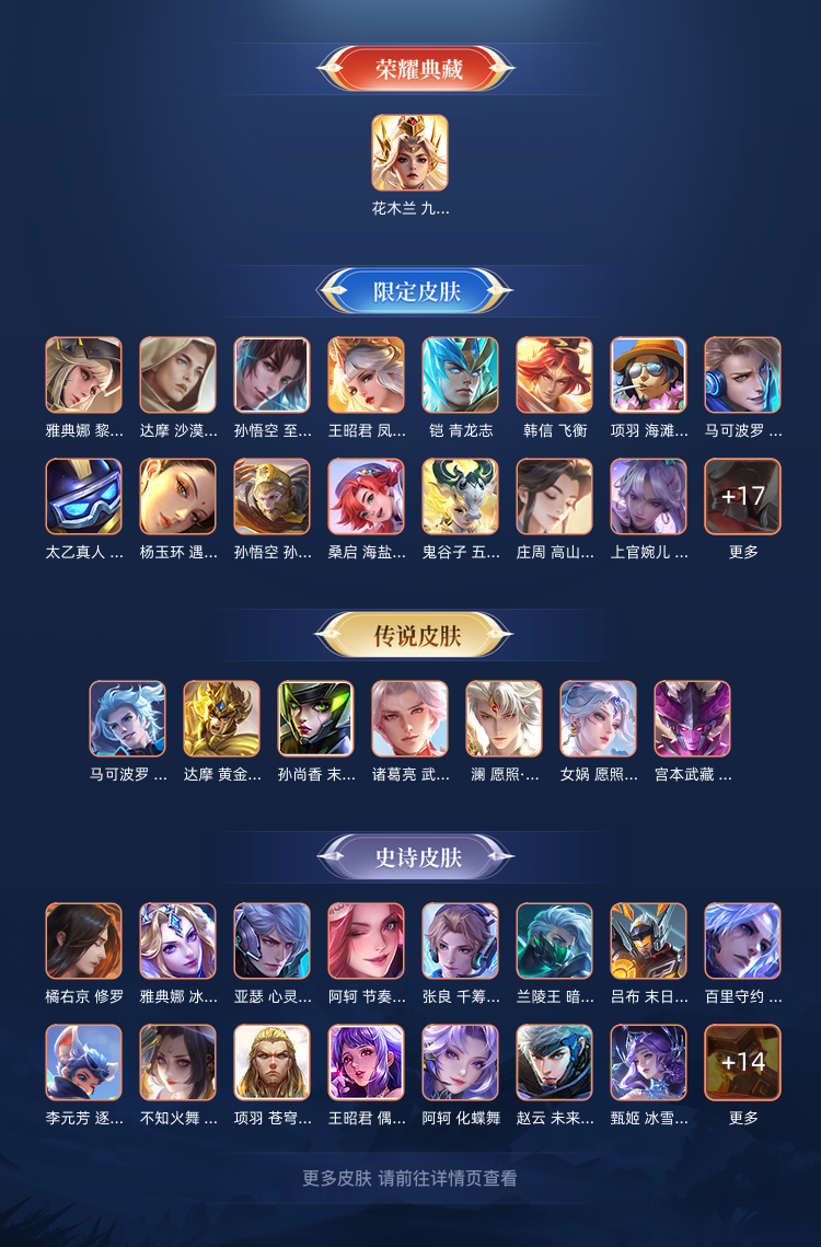【V7 238皮】【V7】238皮1花木兰荣耀典藏-至尊宝-落雪白狼-深海之喜-澜女娲蛇年限定