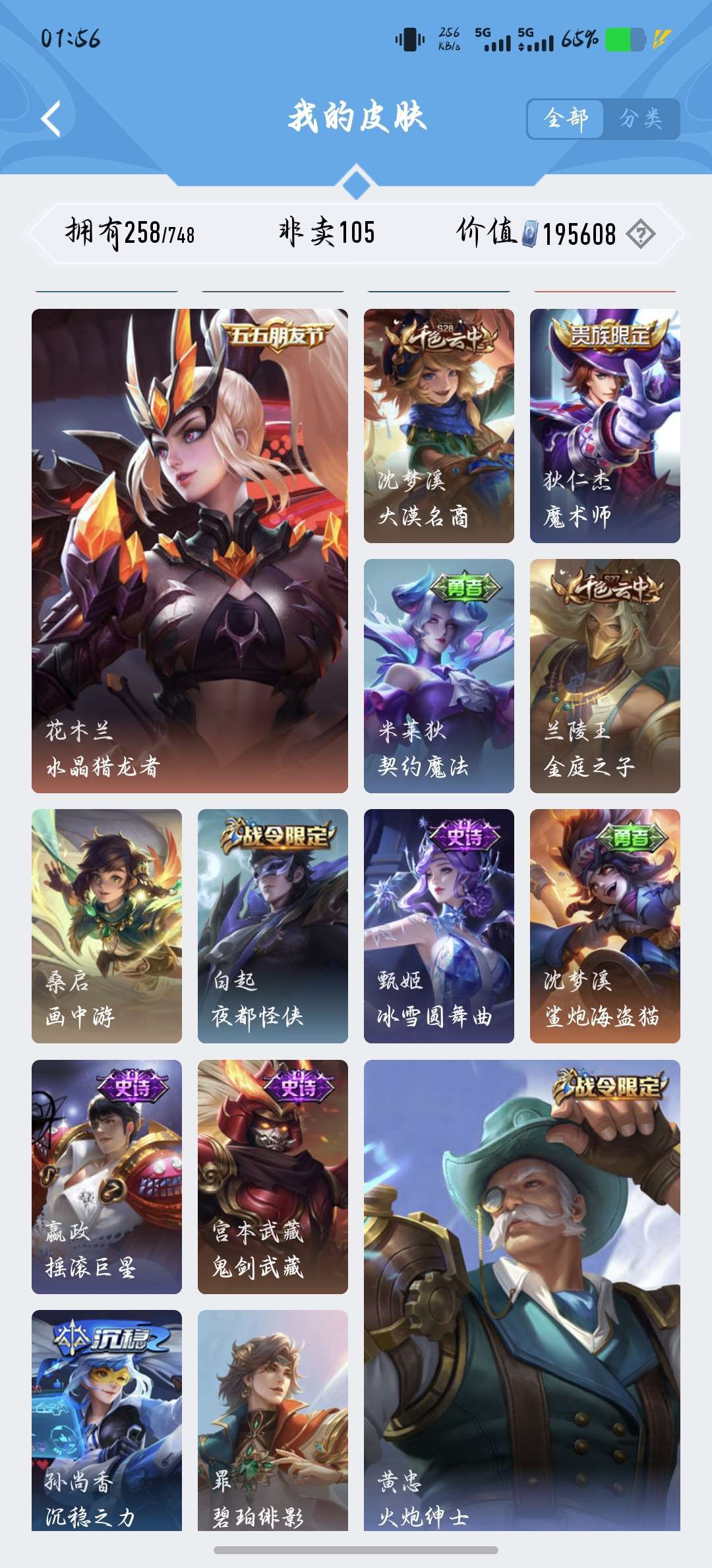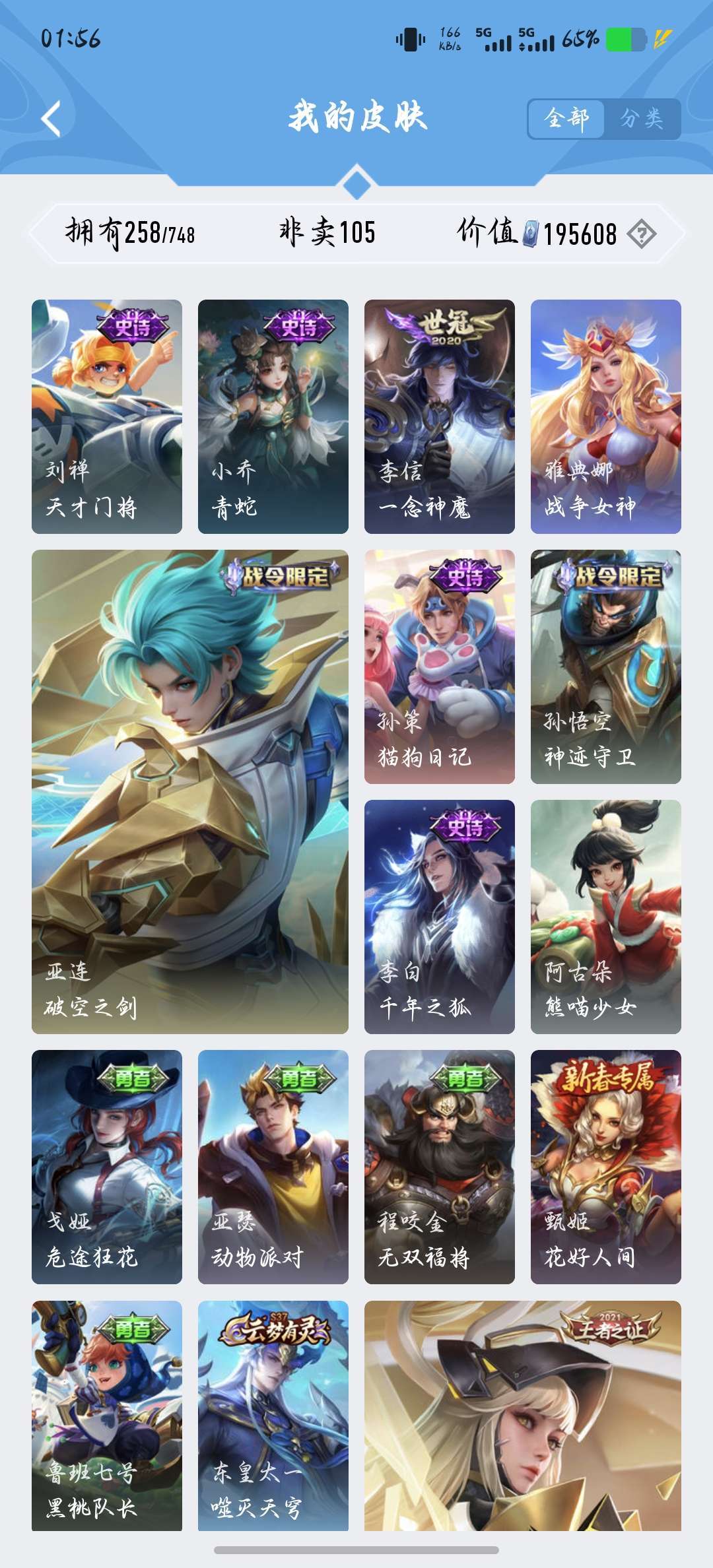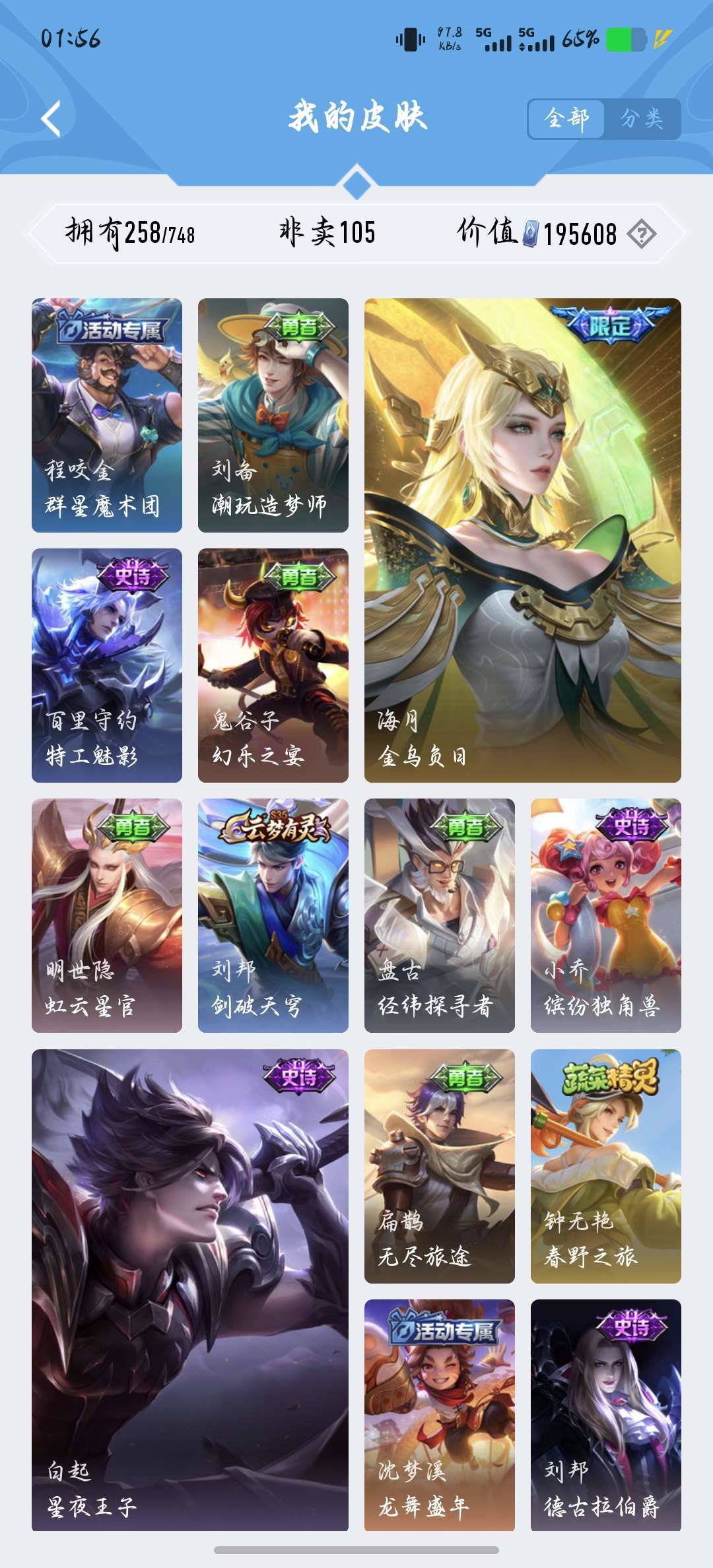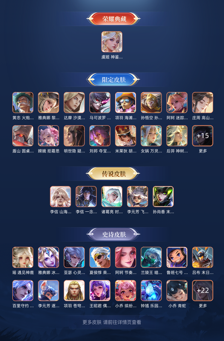 有虞姬典藏,李信全皮,诸葛亮限定,海月限定等,铭文150王者30星,可打巅峰赛,无禁言