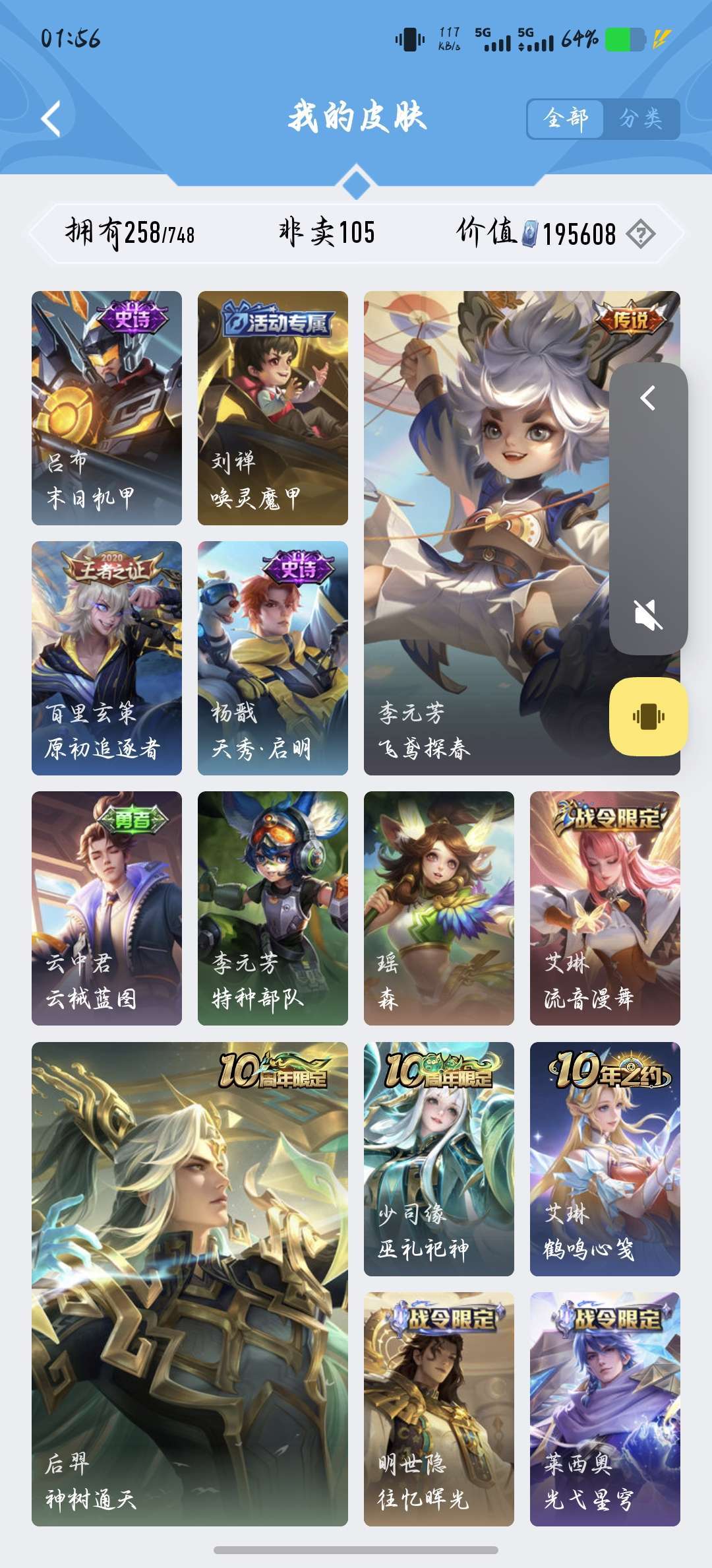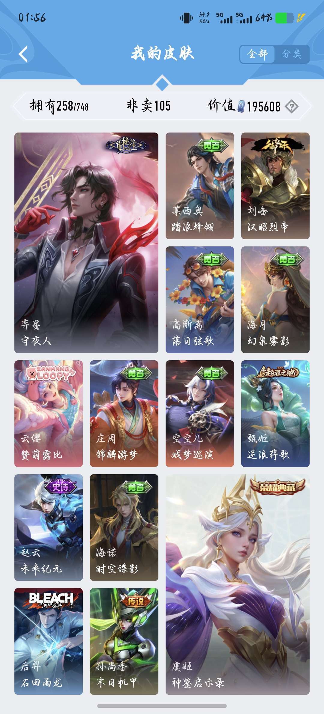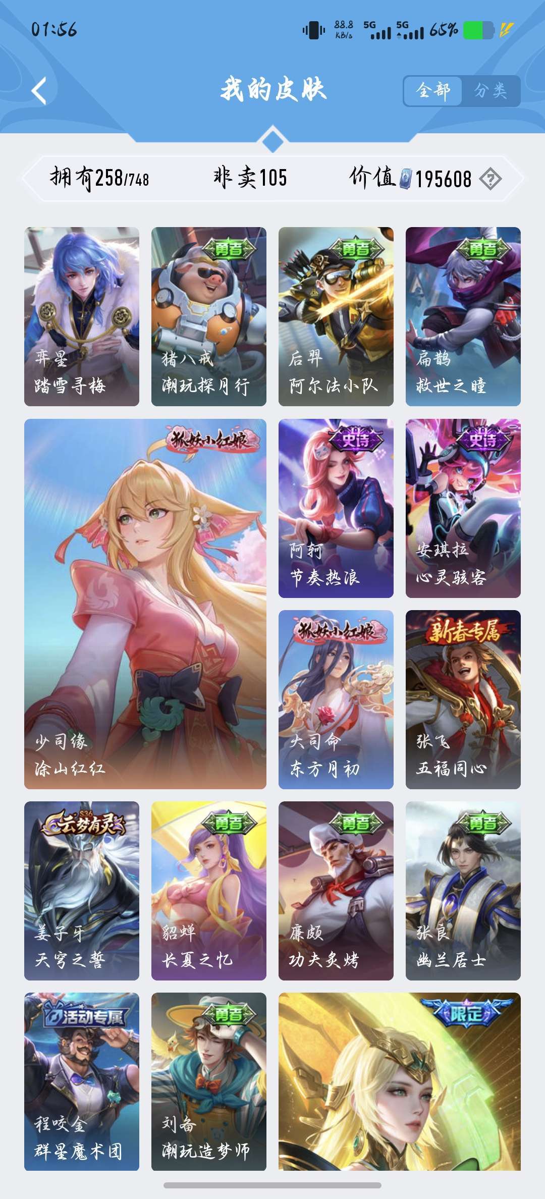 有虞姬典藏,李信全皮,诸葛亮限定,海月限定等,铭文150王者30星,可打巅峰赛,无禁言