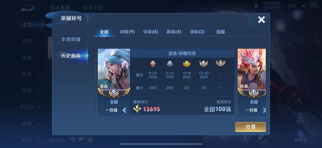 巅峰万强闪电框⭐️小国亚连在榜⭐️省标孙策在榜⭐️可排位禁巅峰