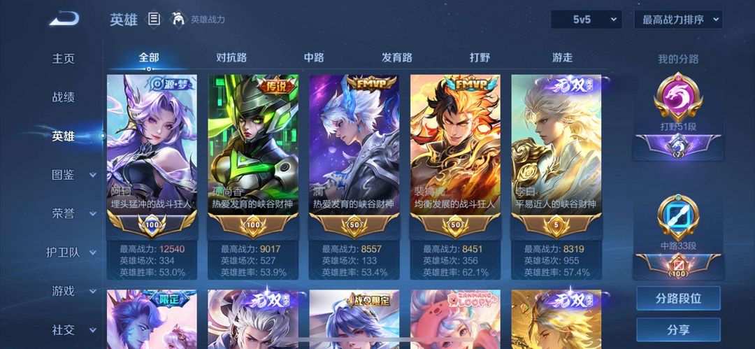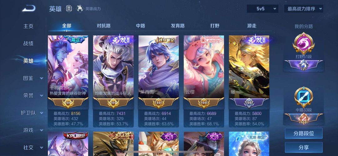 贵十,500+个皮肤,无双,珍品,典藏都有,传奇百星王者,巅峰分较低,可随时开打!