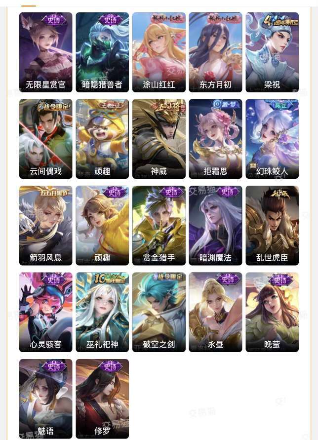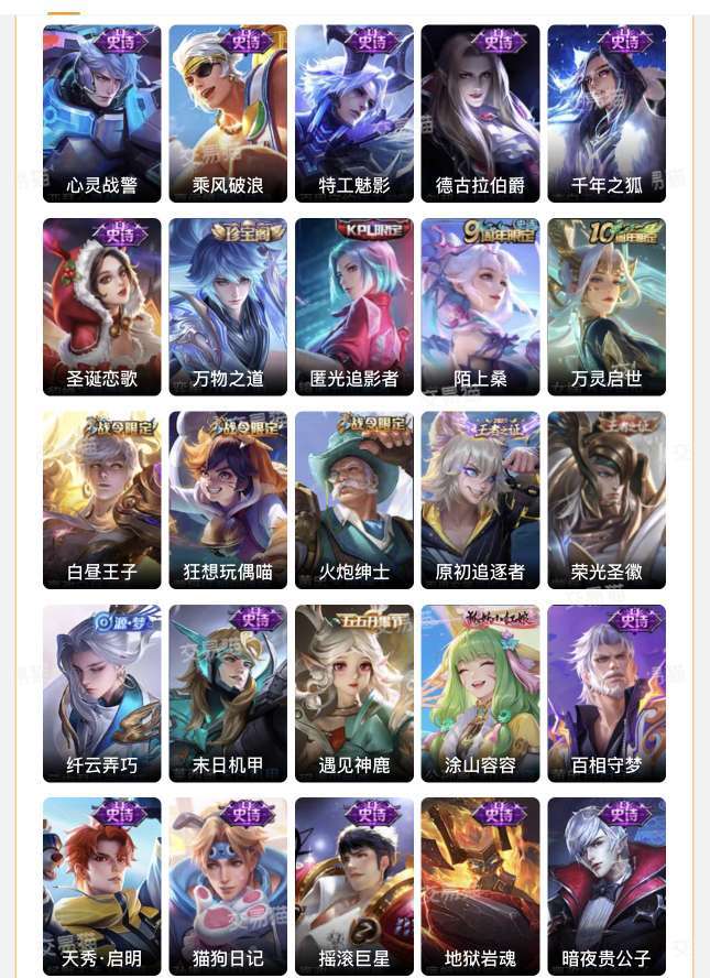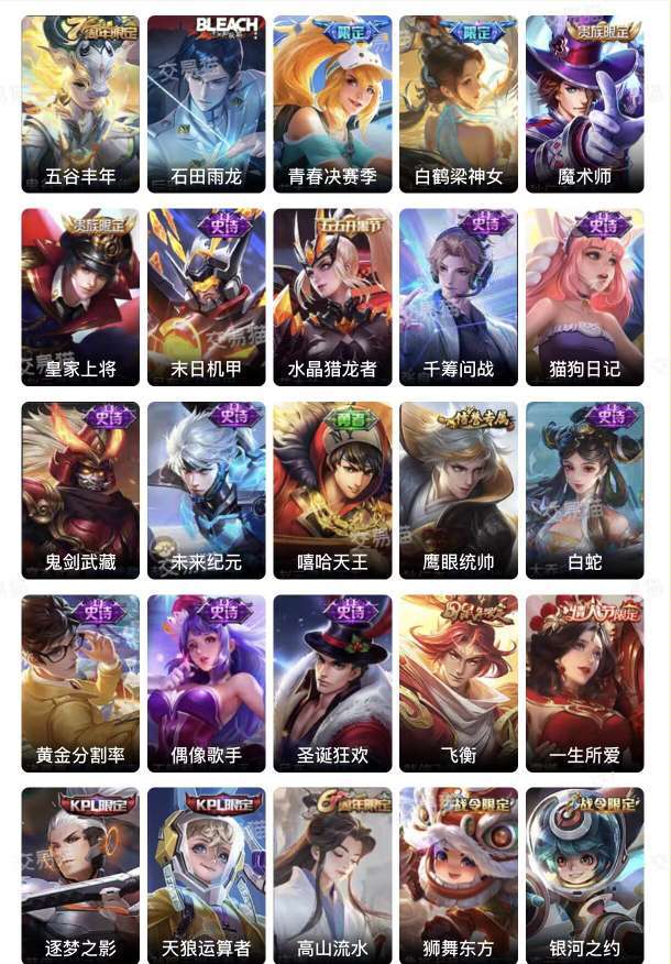 V10⚡国服⚡6典藏1无双6星传37传说429皮⚡全息碎影⚡天机白泽⚡怪盗基德⚡大耳狗之梦⚡九霄神辉