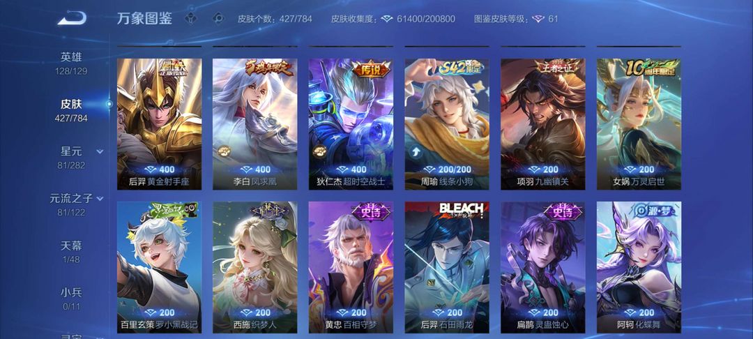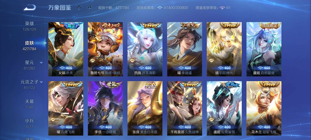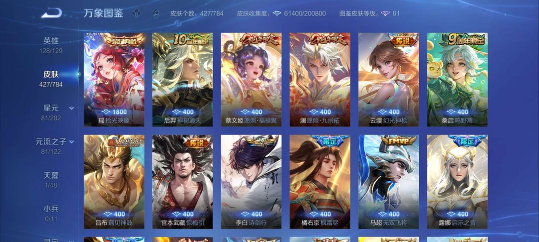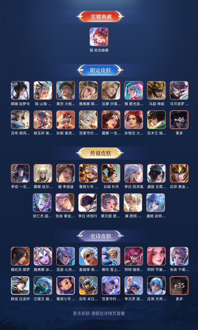 李白凤求凰,曜李逍遥,露娜启示之音,澜愿照九州拓,马超无双飞将,女娲补天,瑶拾光映像,西施游龙清影