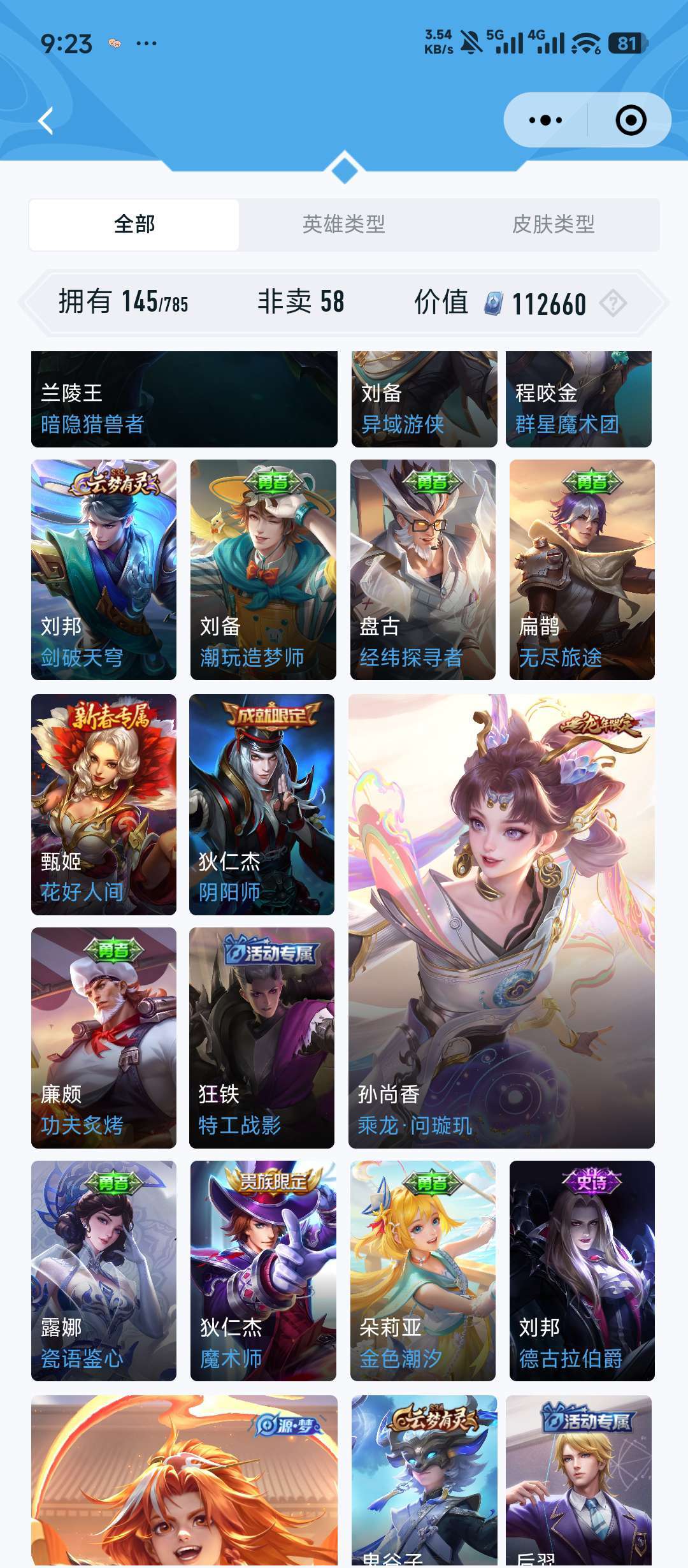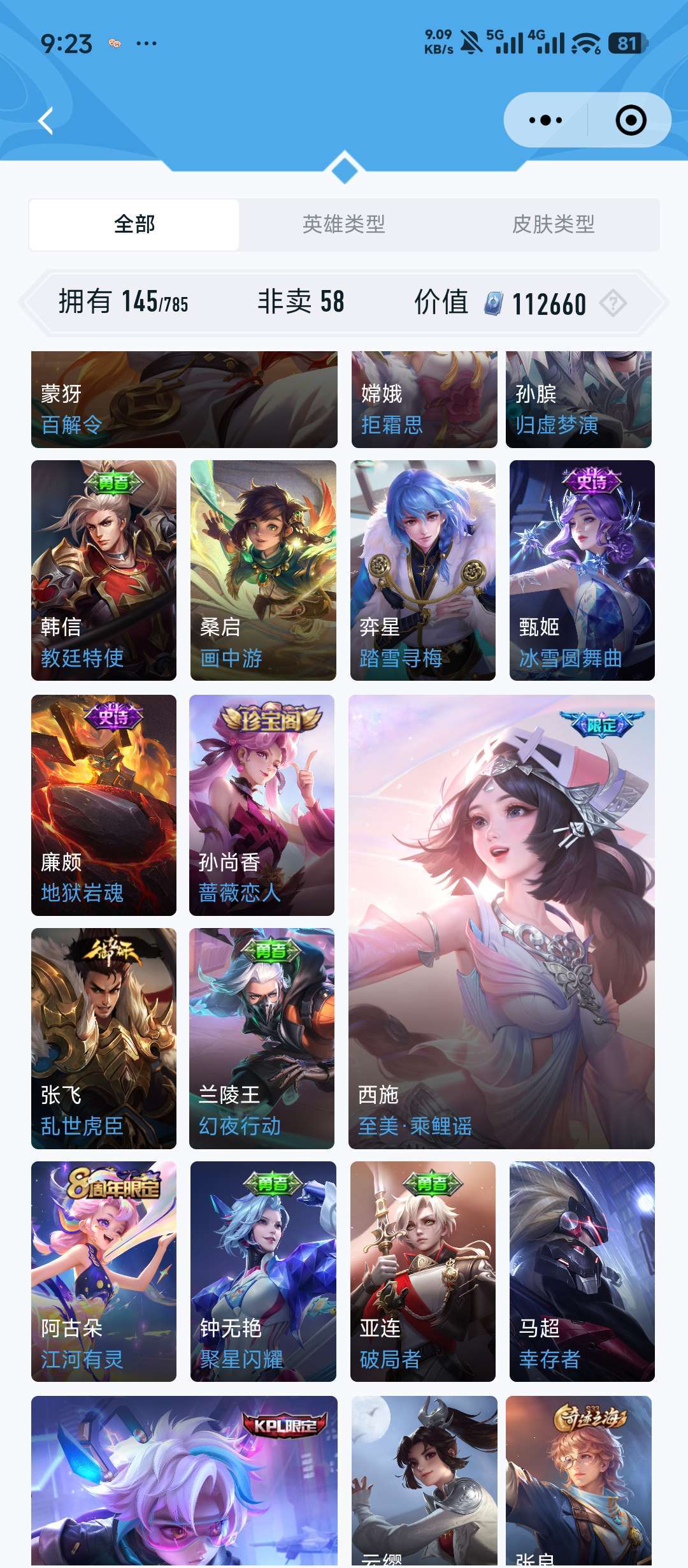 装备描述:瑶荣耀典藏 碧波行大耳狗之梦 少司缘涂山红红 孙尚香 乘龙·问璇玑 西施 至美 伽罗 炽焰辉光 小乔琳琅生