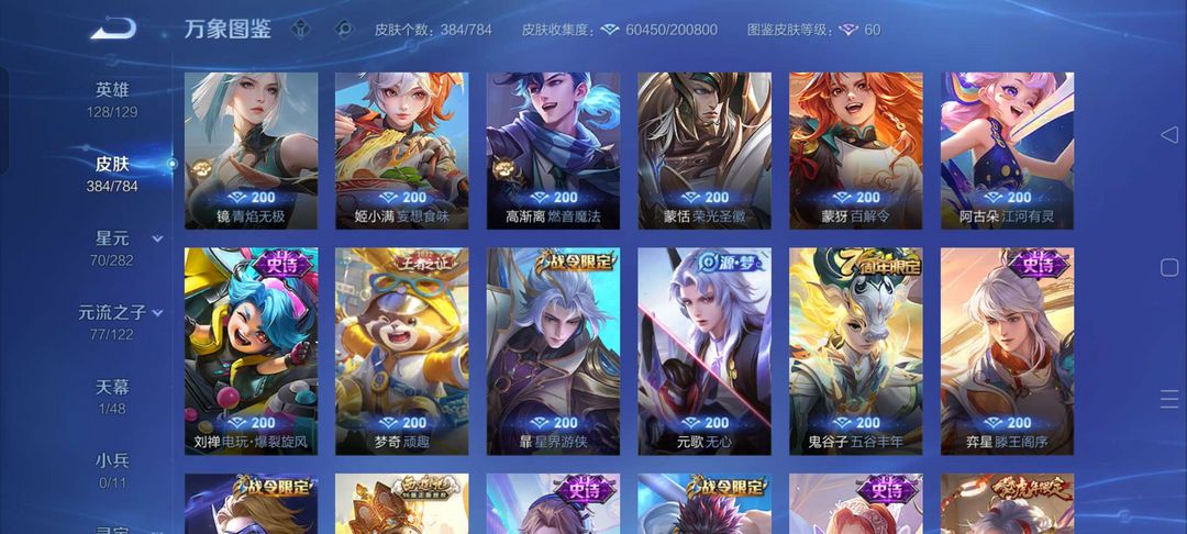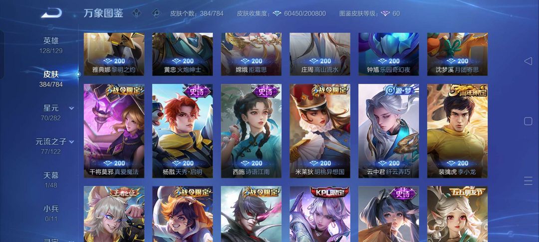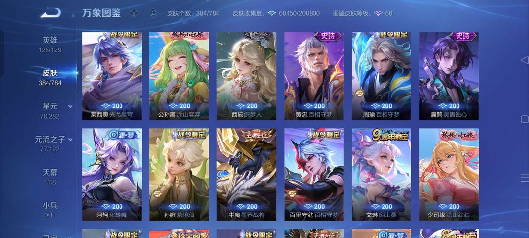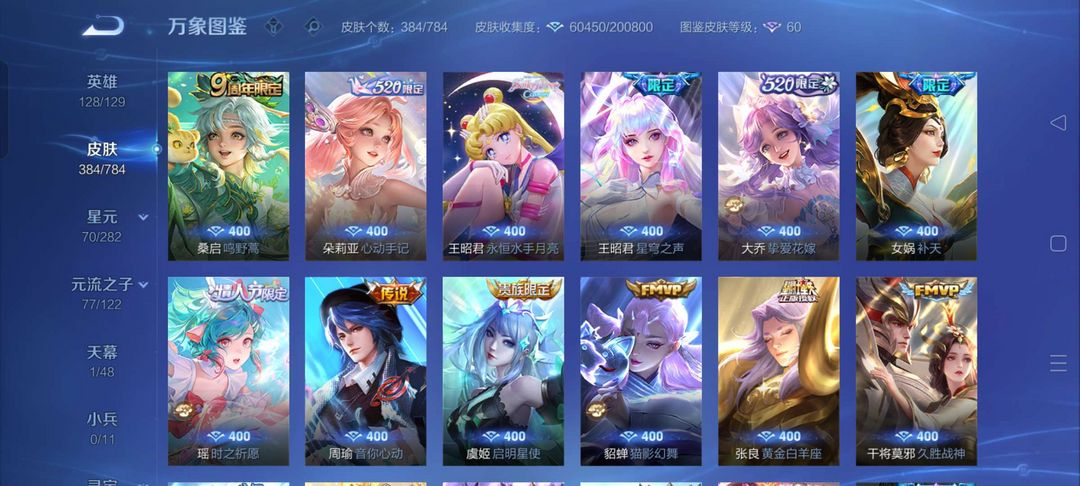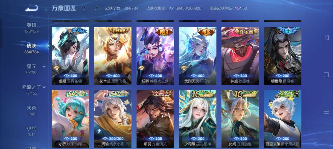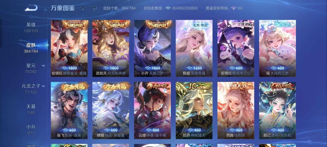 三个典藏皮肤,甄姬无双,三丽鸥无双两套.......