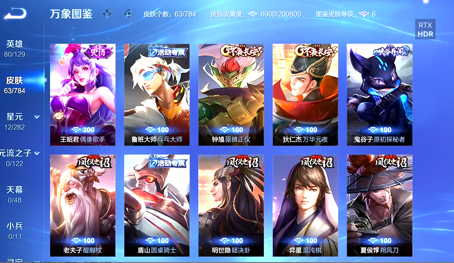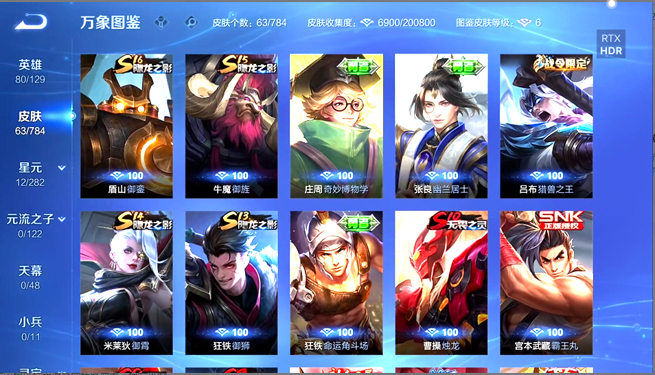 白虎志等68个皮肤,低段位,带妹可用