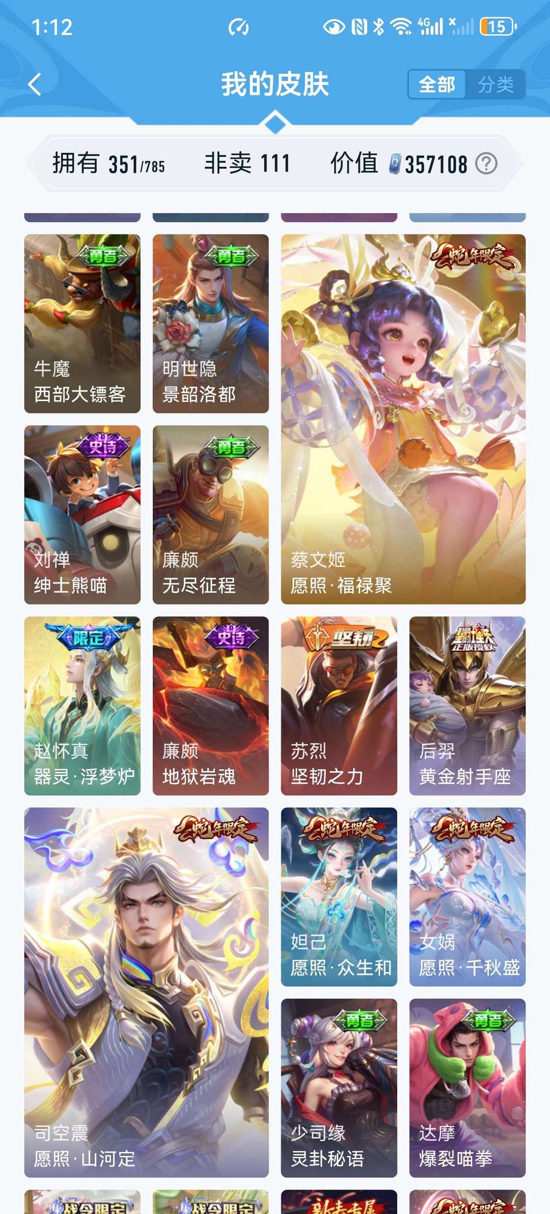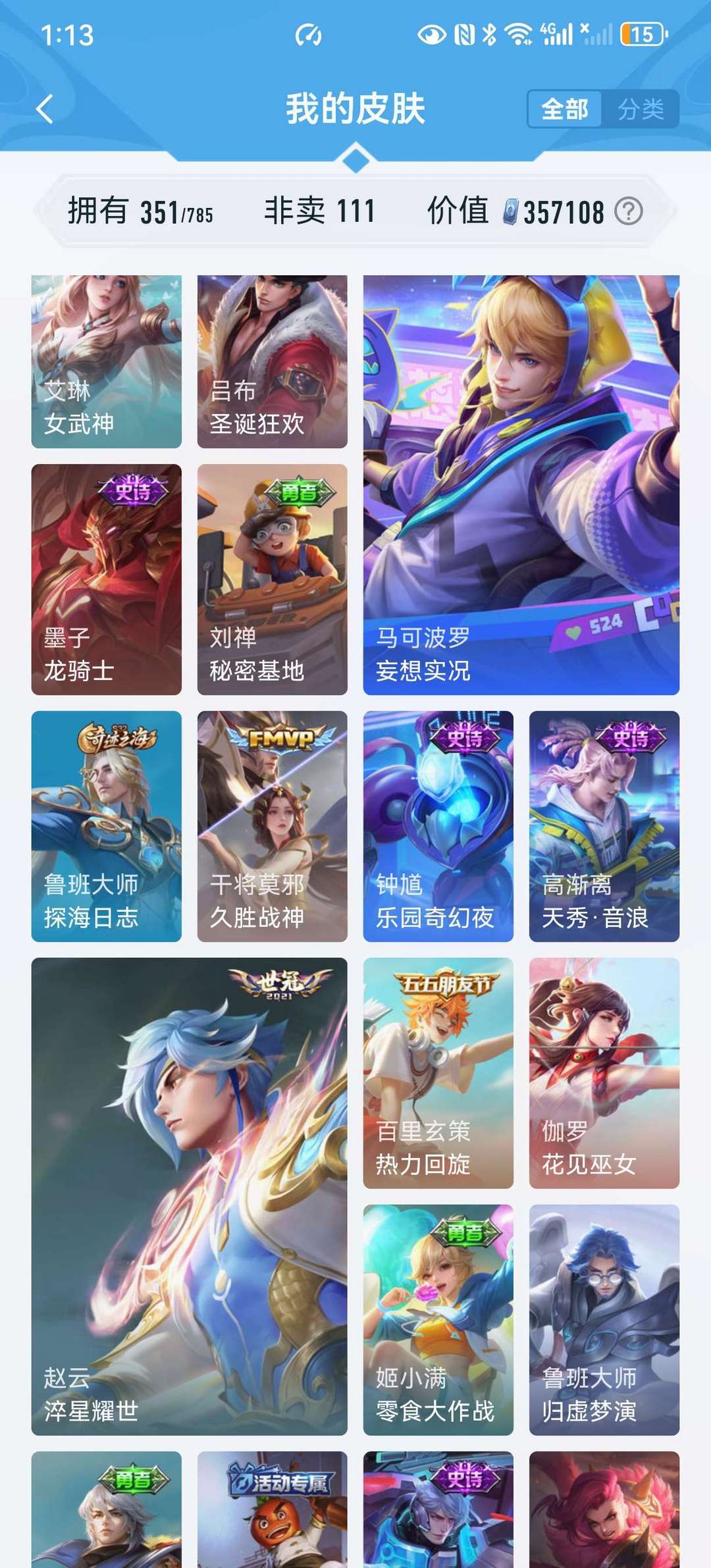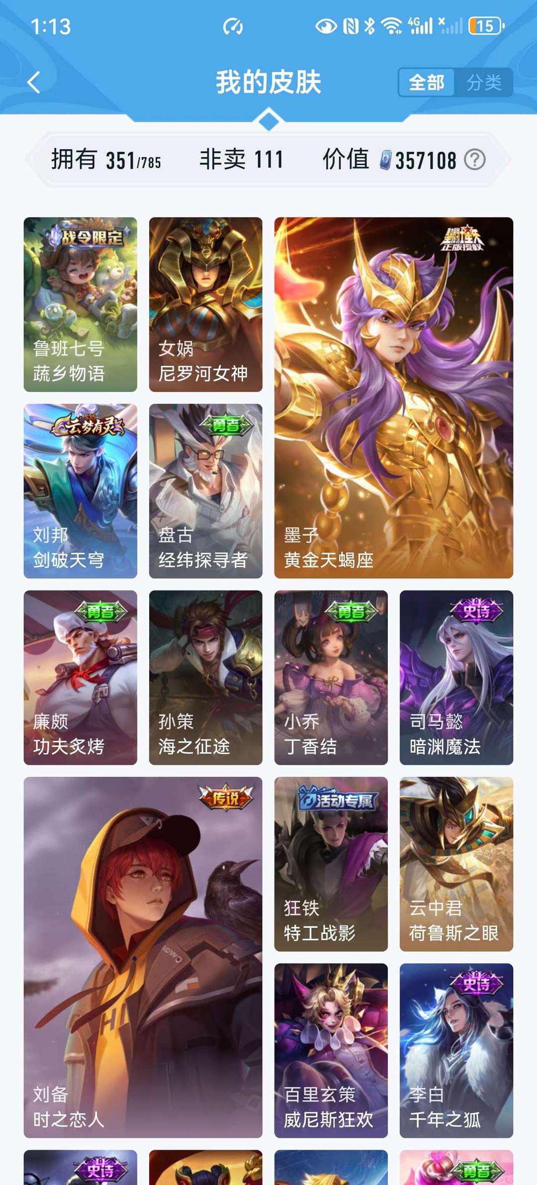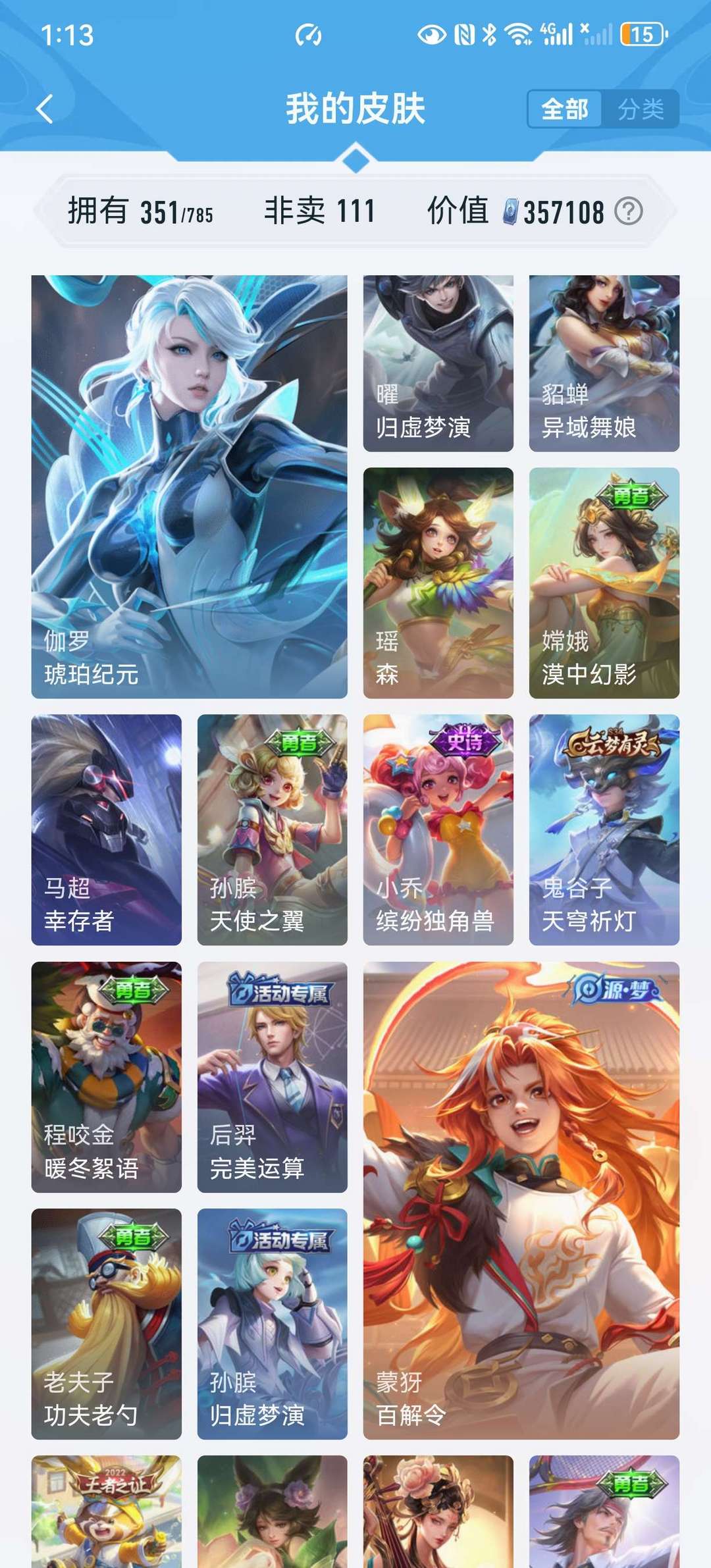 安卓V区V9 351个皮肤 六个典藏,至尊宝、天魔缭乱、蓝屏警告,蛇限全套