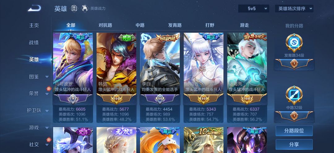李白荣耀典藏、孙悟空无双、多传说/限定/战令/周年庆皮(差2个全英雄,全位置热门英雄