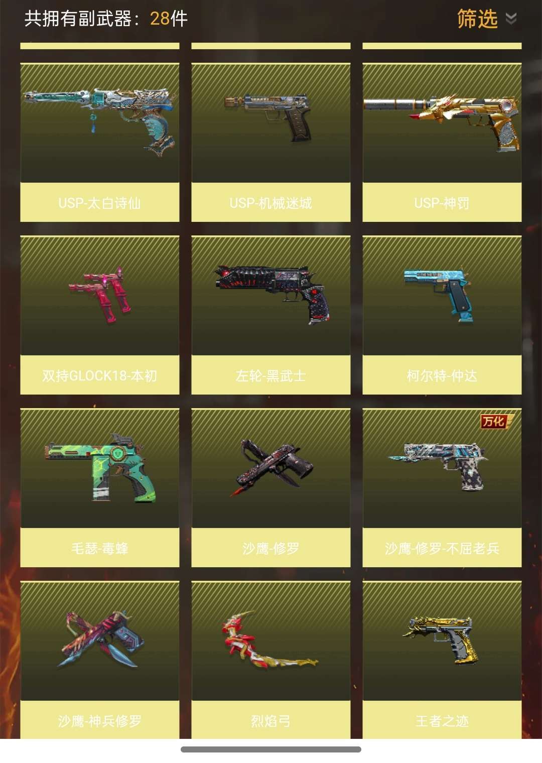 幻神,秒才,天龙,光明神,云舞,黑武士,黑铁cop,王迹手枪和各种USP,。欢迎打狙的来