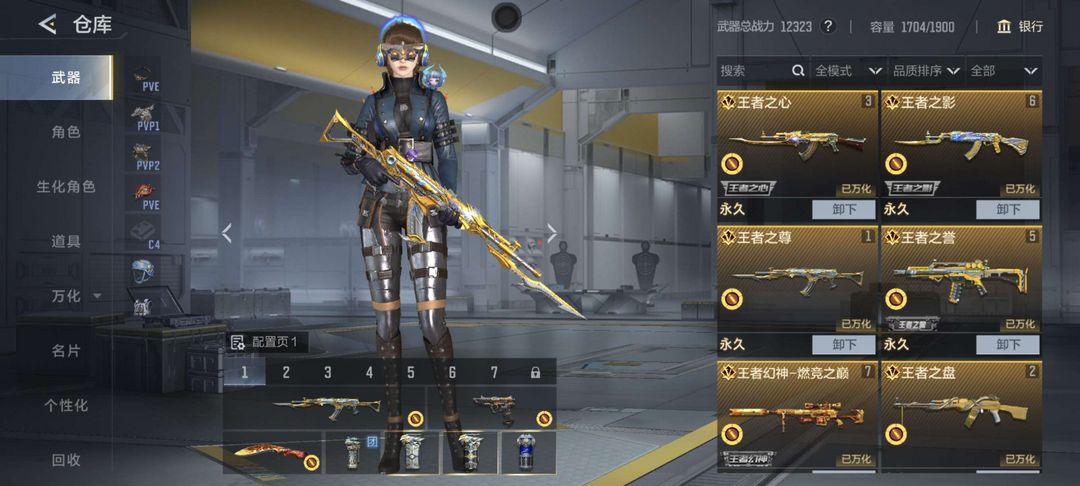 王者幻神王者之蝶等12把王者武器,188v英雄武器,打生化爆破完全够用