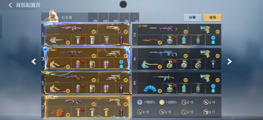 v10爆破生化开花21至尊巨多套装出租20w 收藏点数71180, 王者武器数量123