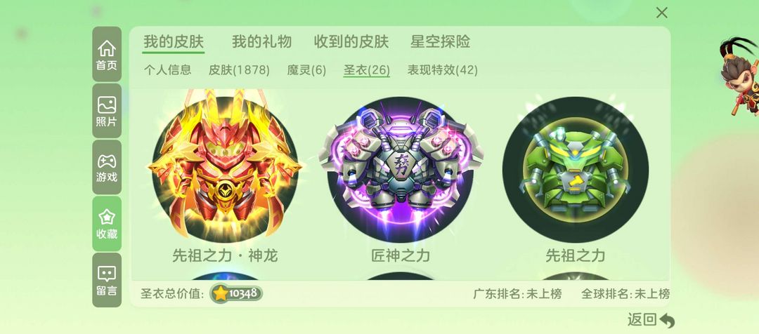 装备描述:甲壳虫映山海套装,巨龙传说套装,太阳之力套装,六翼大天使套装,炽天使套装,至臻水滴,圣兽玉璧,限定魔灵先祖之力神龙。喜欢本账号请点 ☆收藏☆ 方便下次租用,谢谢光临惠顾!