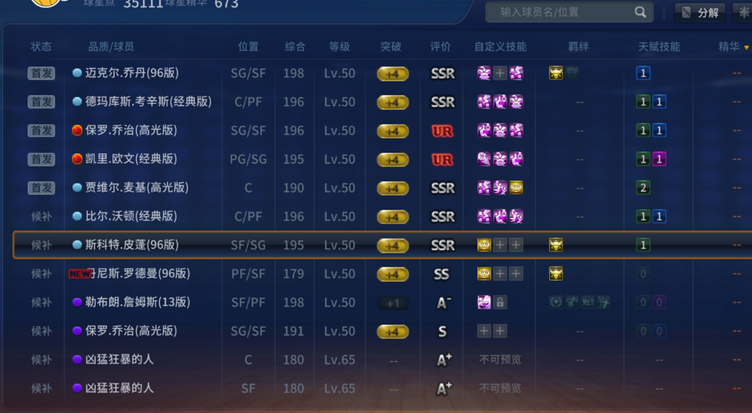 装备描述:最新96SSR乔丹⭐⭐⭐联合UR乔治UR欧文⭐⭐⭐,最新SSR经典考神。SSR大将军三分特工,SSR沃顿