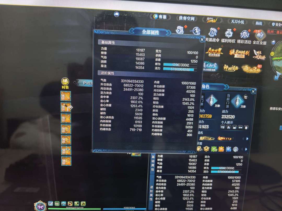 四星大悲四星毛1265会伤满飞仙满镇派二星沧浪万象男号战力23..25削外防10199