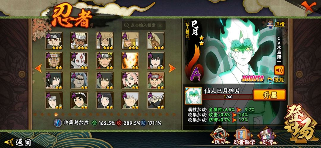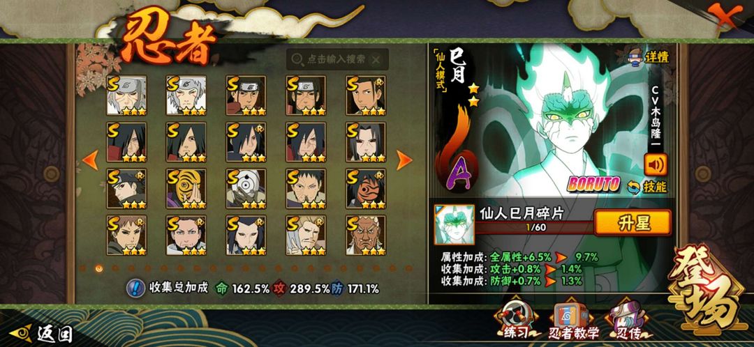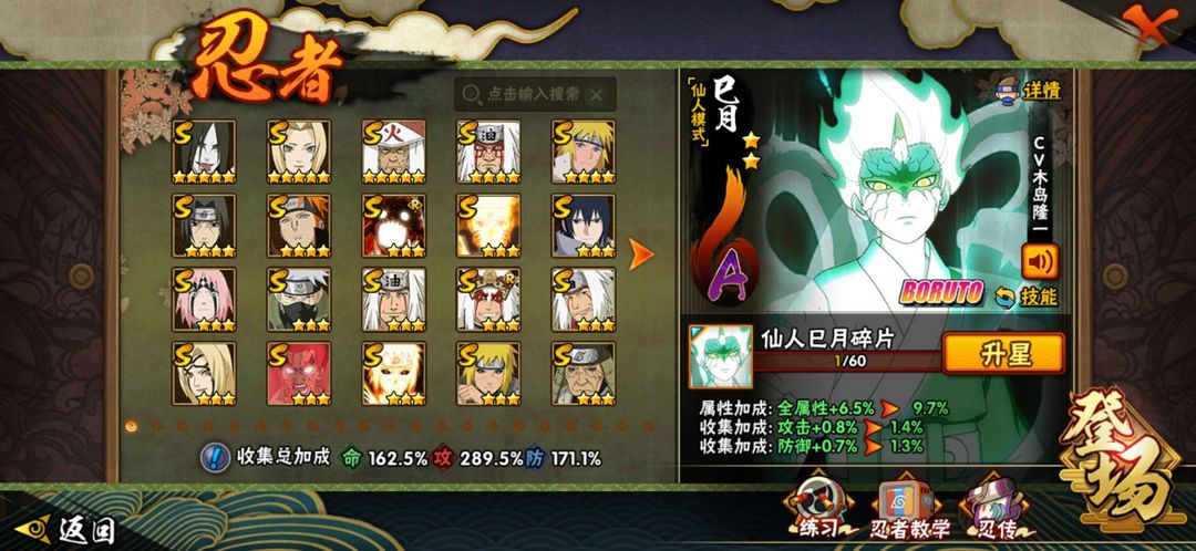 2500w战力 全S忍 342个忍者 仙人巳月 九喇嘛水门 54S 64A
