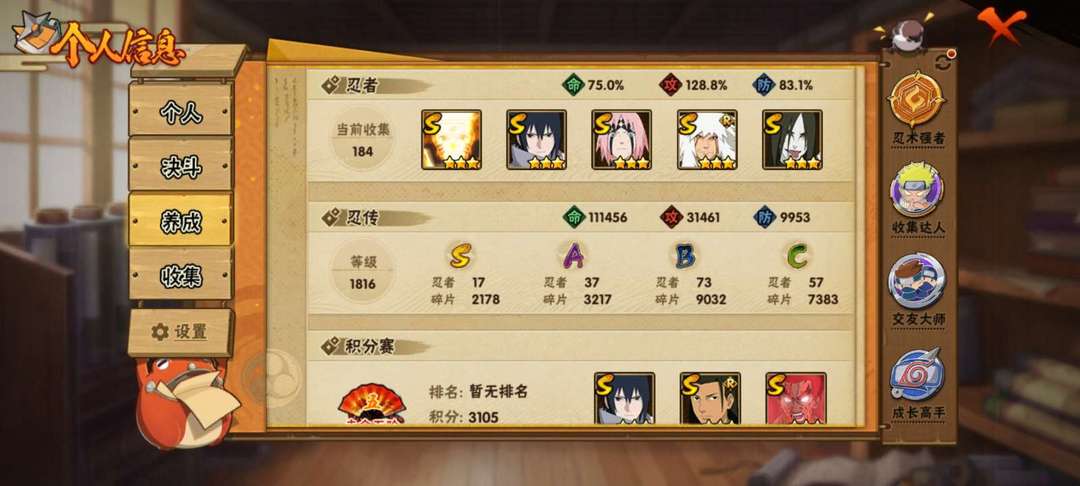 限制: 租号30次及以上 |装备描述:V11 熊猫 蛞蝓 青水 新水 秽土解斑 秽土斑 创立柱间 秽土柱间 秽土鼬