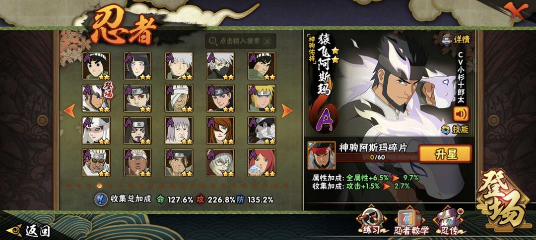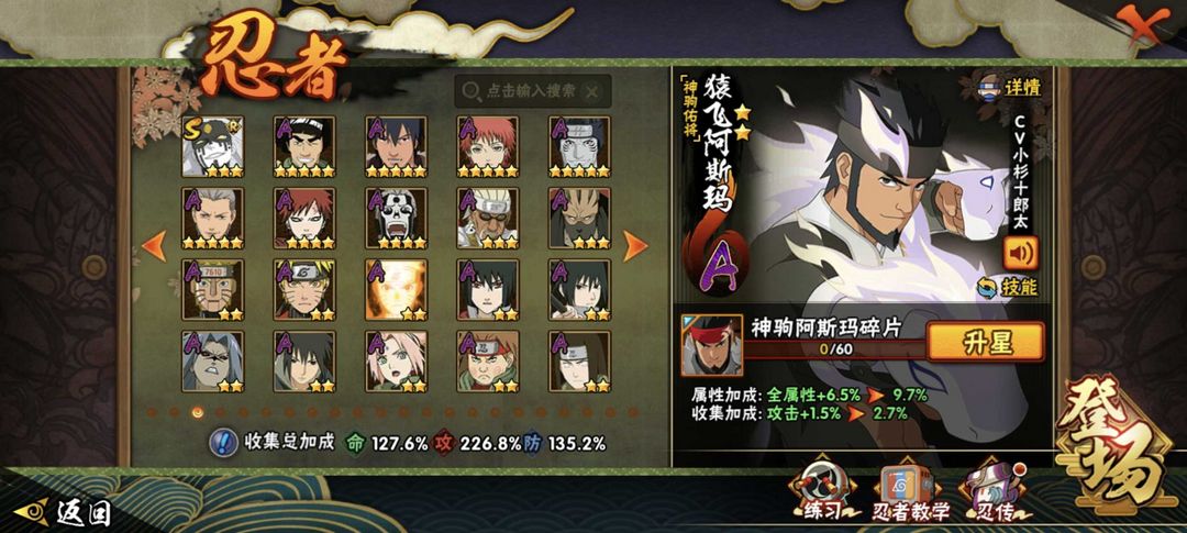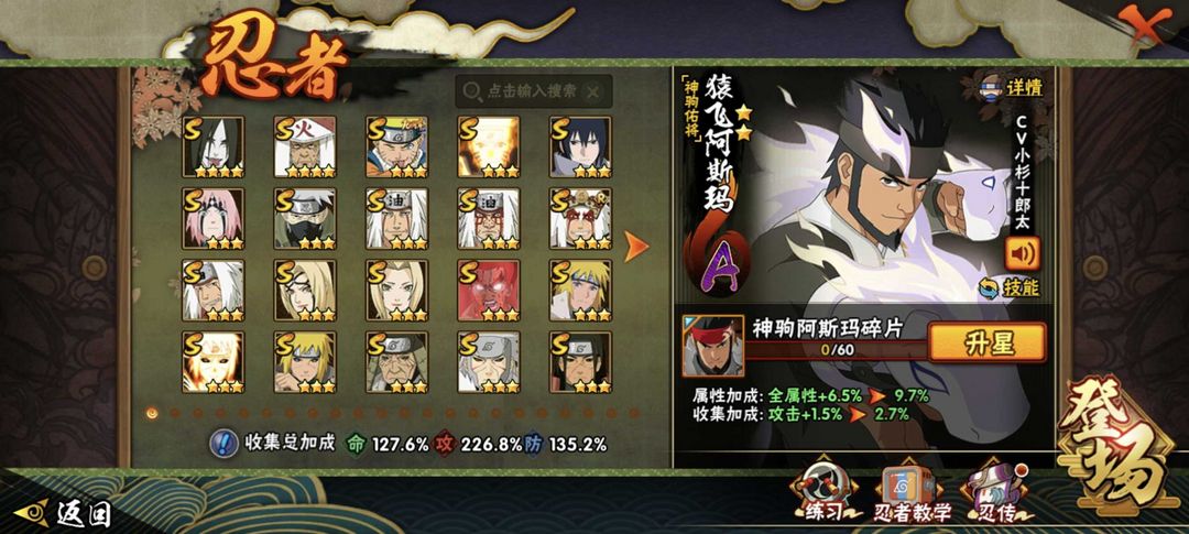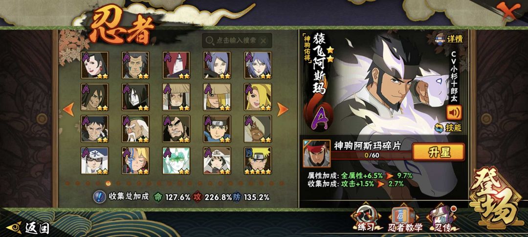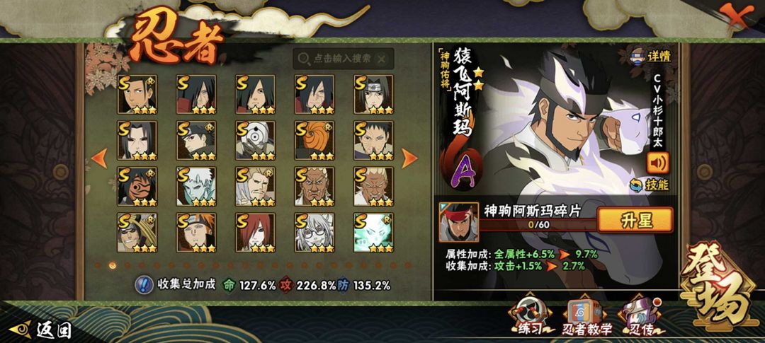 神驹阿斯玛✨十尾带土✨漂泊带土✨261忍者41S+56A✨五影会谈斑✨须佐卡卡西✨高招A已齐