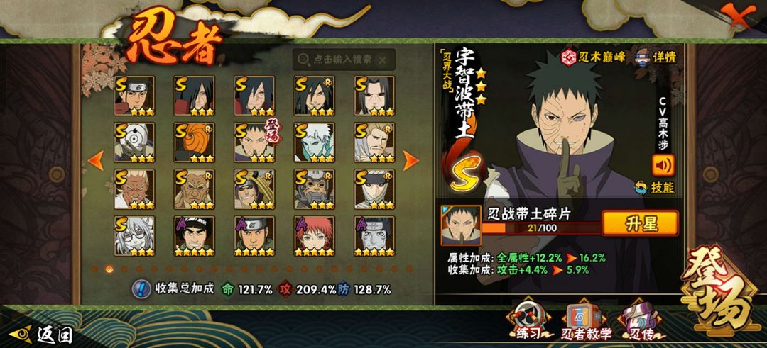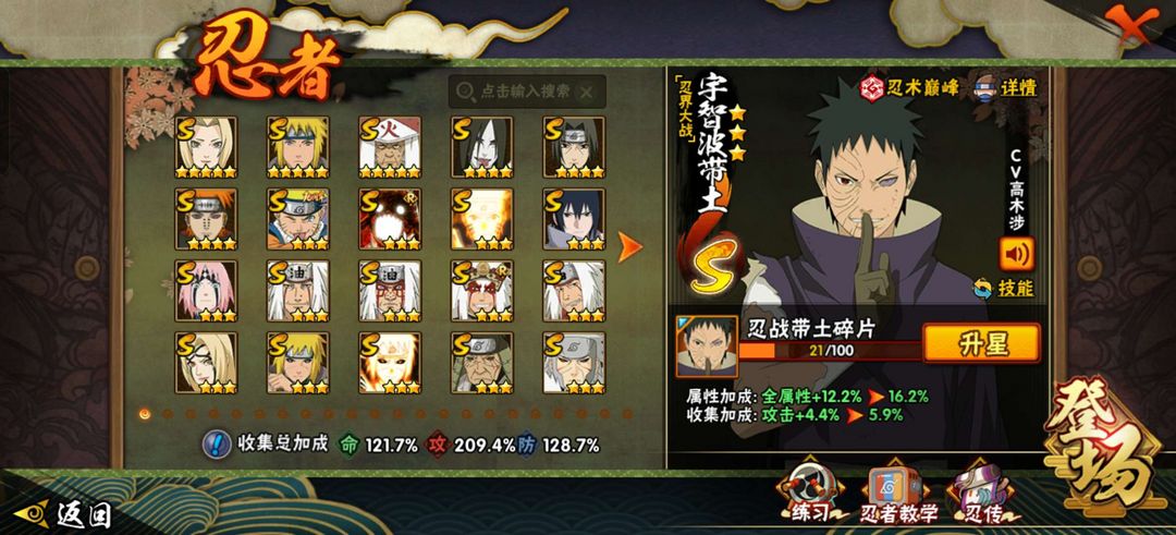 马斑,五影班,黑绝,无,金银角,六尾鸣人,十尾带土,仙人巳月,水门九喇叭连结,半藏,小胡子