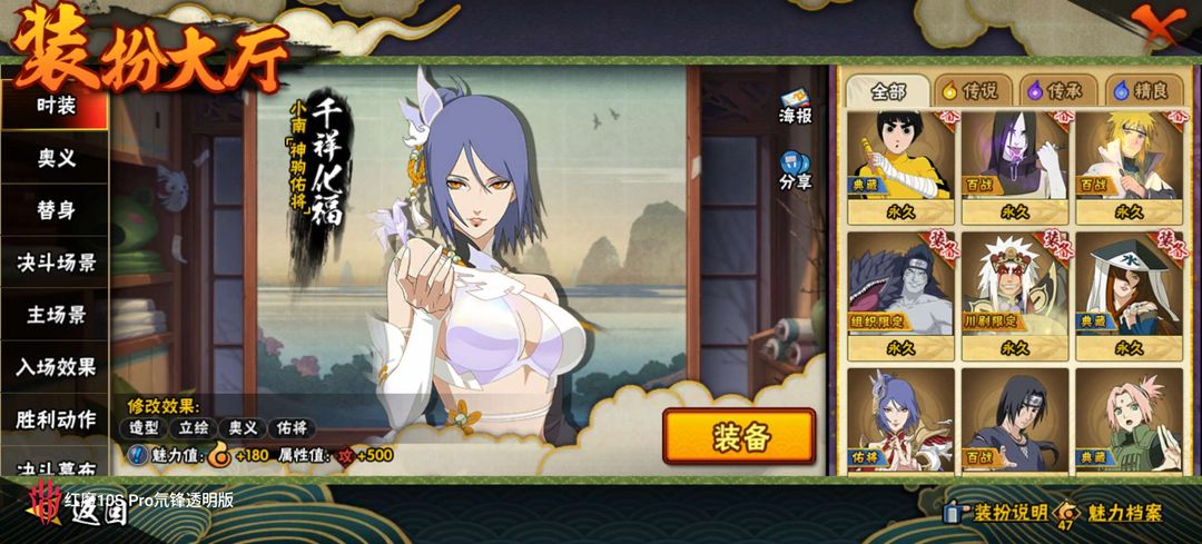 装备描述:皮肤5个本人也不好描述看看图片就知道号主有那些忍者
