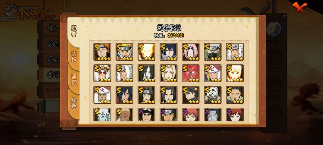 23s♥须佐止水♥58A♥狂野鲛鲨♥蛞蝓♥1390w战力♥基础秘卷满级♥侠隐纲手皮肤♥