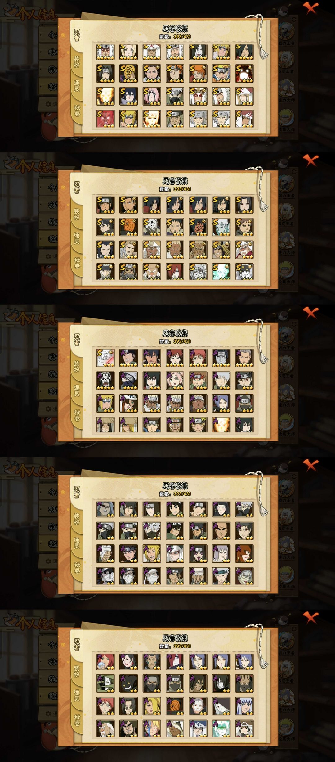 神驹班★十尾带土★黑绝★漂泊再不斩★鸡翅佐助★新春小南★新春鼬★暴怒带土★高魅力★多皮肤★近全忍者★