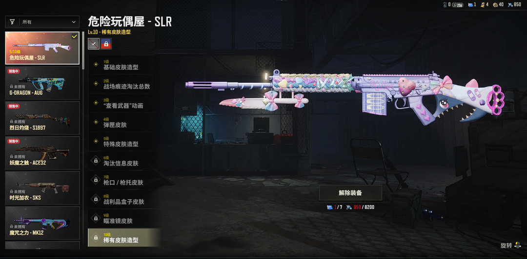 ⑤级危险玩偶屋SLR✅标准猎手AKM✅危险玩偶屋M762✅金色落叶SKS✅湮灭M24✅蒸汽计量表98