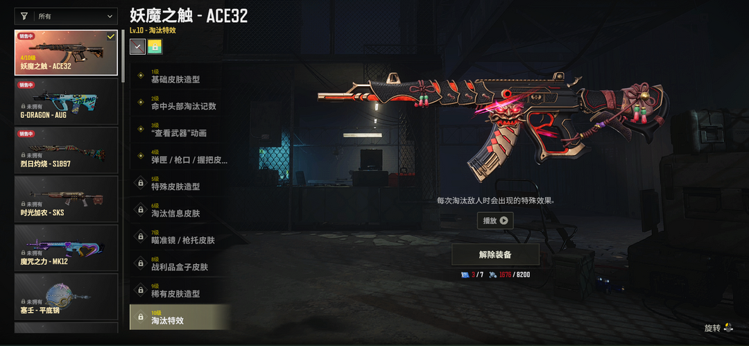 ④级妖魔之触ACE✅雪国风光M4✅焰弹召唤者AKM✅皇冠宝石M762✅金色落叶SKS✅水手SLR✅湮