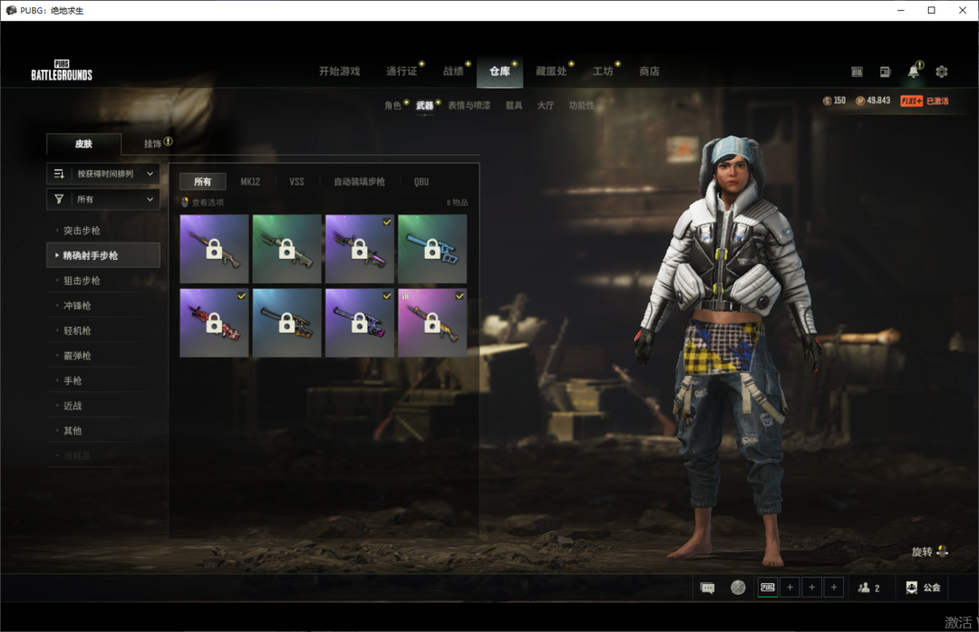 装备描述:可排位✨猛虎猎手SLR✨山花烂漫M762✨拉风龙柏林裤✨小熊觉醒长裤✨公路王牌落日余晖✨疯狂患者套✨劫掠者套✨劫掠者套✨小兔航天套WIA双马尾✨WIA兔耳帽✨已购PLUS+✨SKS⚡M4⚡AK⚡绝地求生