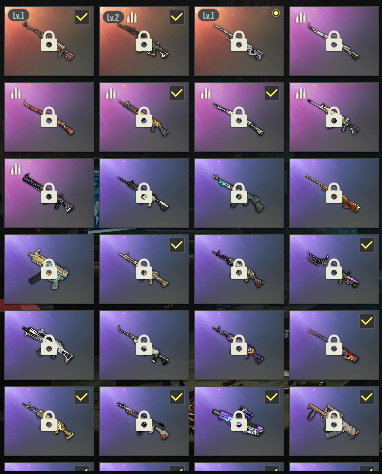 ①级时光加农①级妖魔之触①级幽影残魂✨猛虎猎手SLR✨鎏金王朝M76✨鲜花之力AKM✨拉风龙柏林裤套