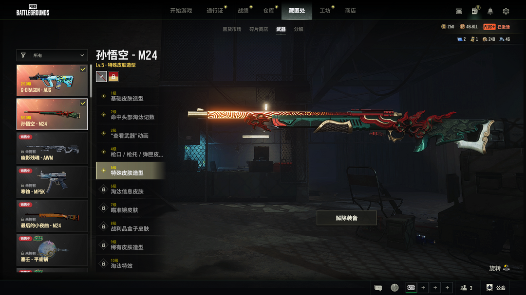 保时捷跑车√5级悟空M24√权志龙AUG√金面具套装√黑鬼套装√柏林套鞋子悲喜套√王者风衣√红面巾√