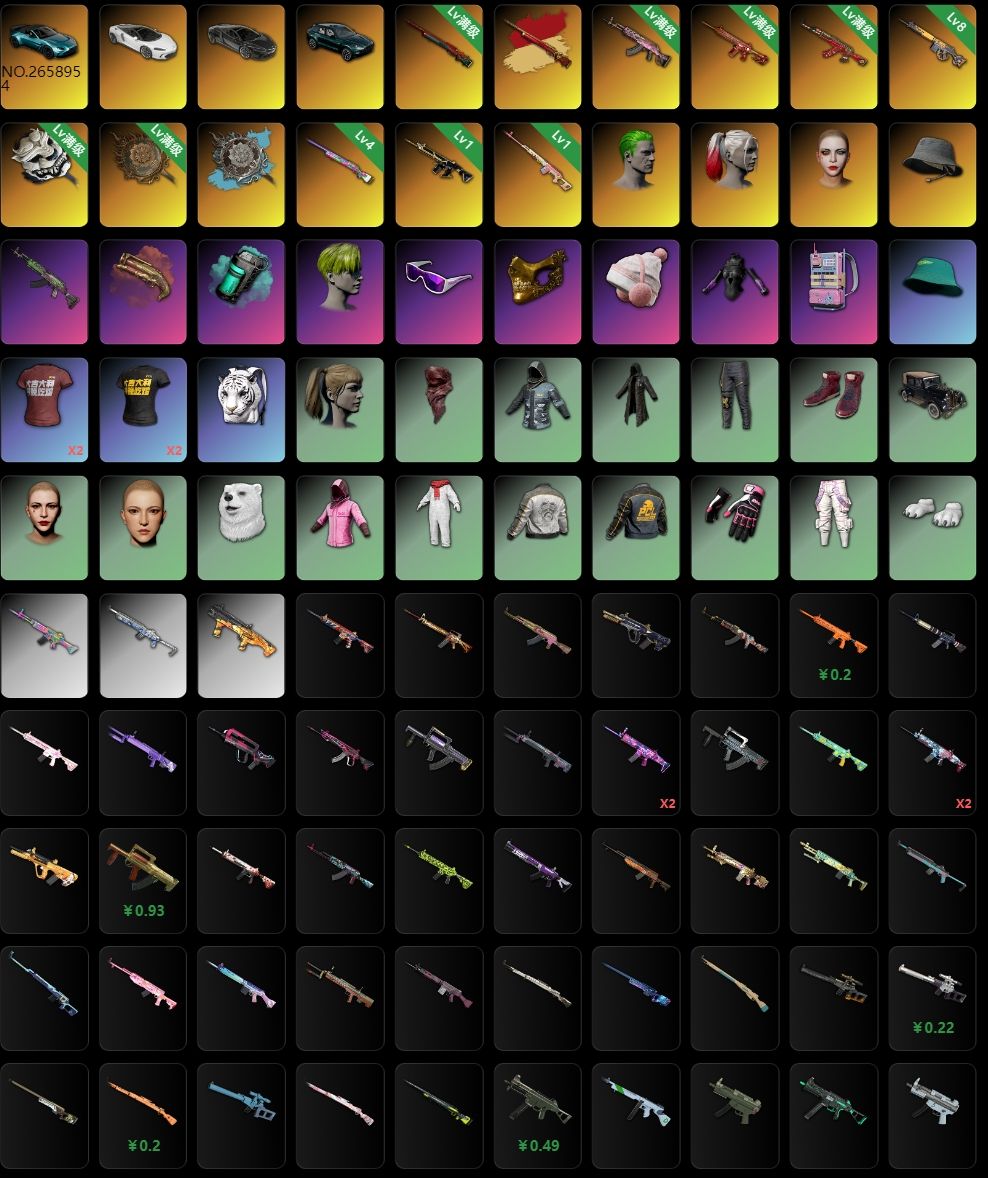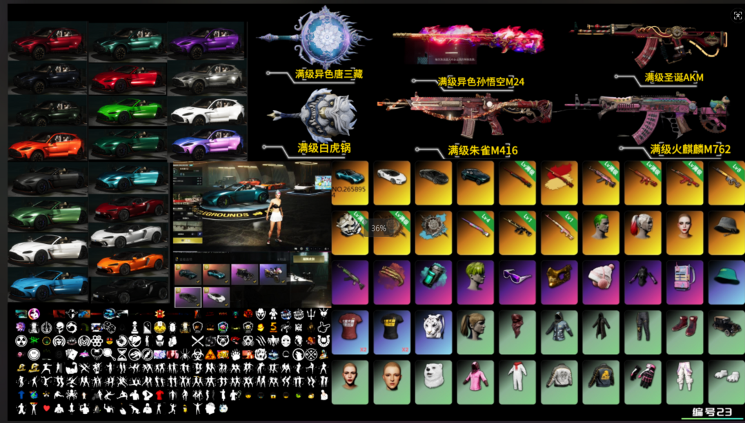 装备描述:---此号为平台网吧电竟专用号,家庭用户无法租用---【7满级9神器】马丁/迈凯伦/满级霓虹AUG/满级异色孙悟空M24/满级火麒麟/满级朱雀M4/ 满级圣诞AKM/满级白虎/满级唐三藏/无重力MP5K/妖魔之触ACE32/双小丑/电磁包/烟枪/彩色烟雾弹/悲喜全套/西游记全套/白虎全套/小战神套/发光套等大量皮肤套装