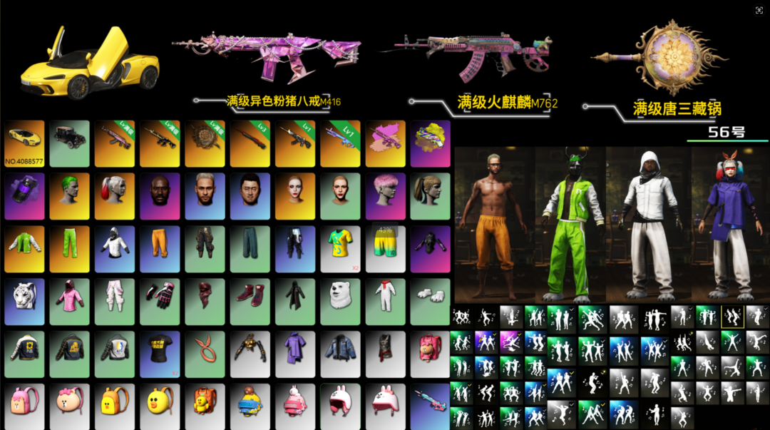 显卡套衣服/双小丑/迈凯伦/满级火麒麟/满级异色粉猪八戒M4/满级唐三藏锅/④孙悟空M24/无重力