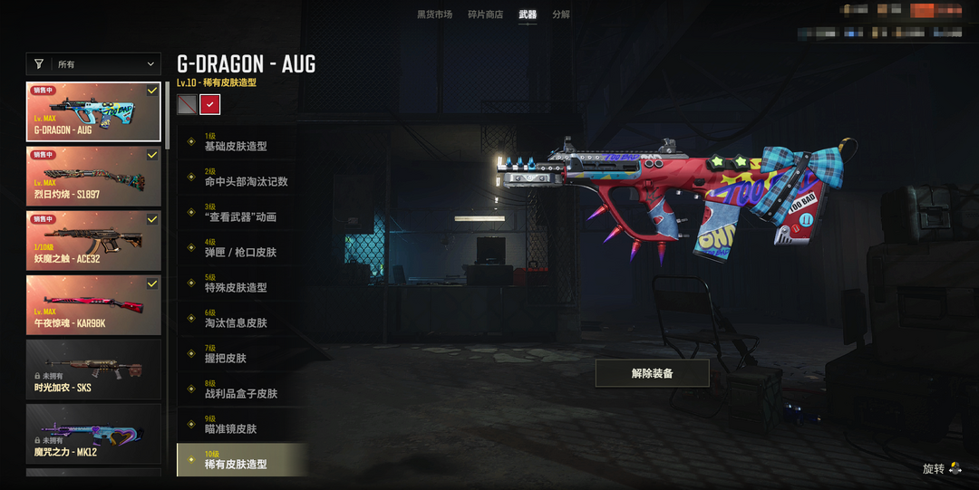 【3满级】权志龙/双小丑/斗鱼夹克/满马丁/迈凯伦/满级异色权志龙AUG/满级午夜惊魂/满级异色烈日