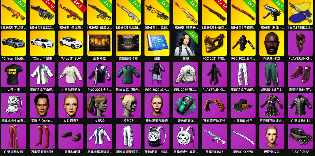 【3满级10神器】满布加迪/兰博SUV/瀚娜/满级霓虹AUG/满级孙悟空M24/满级圣诞AKM/南瓜