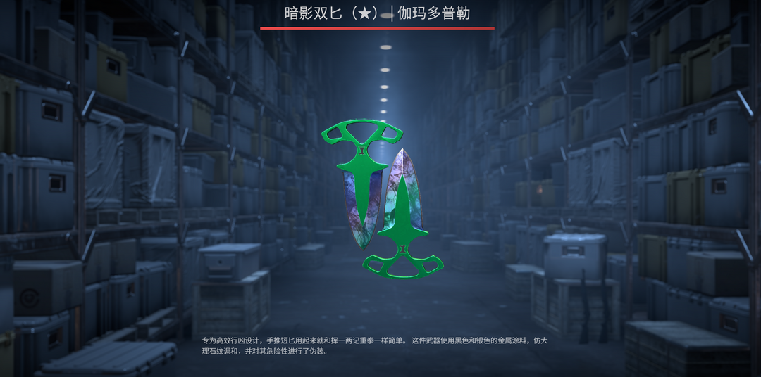 装备描述:可完美B(1885)5E✅伽玛绿宝石暗影双匕⭐AK47可燃冰⭐M4A1幽独⭐M4A4齿仙⭐热处理沙鹰⭐武器全⭐音月盒