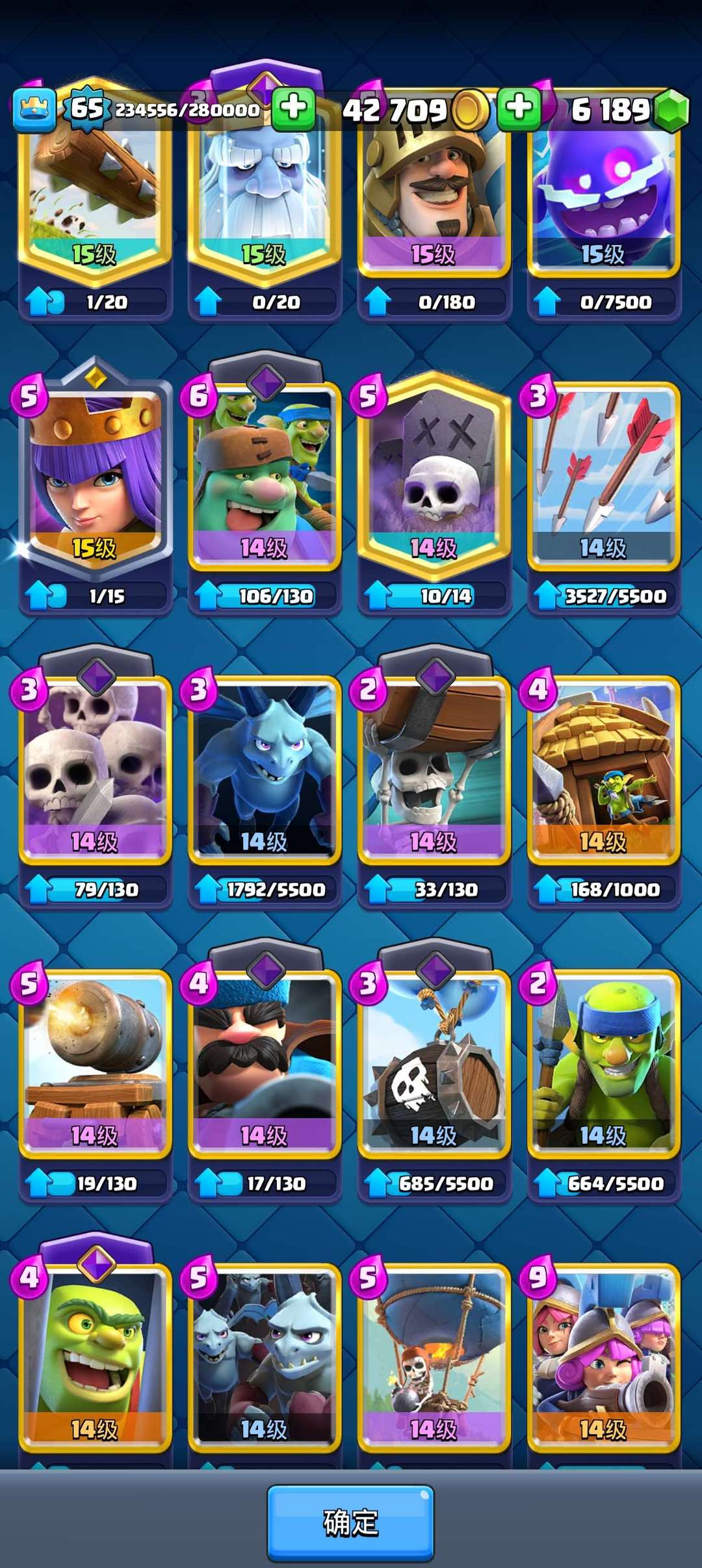 装备描述:全卡,多15级卡牌,2精英,21觉醒 ,100表情,一万杯
