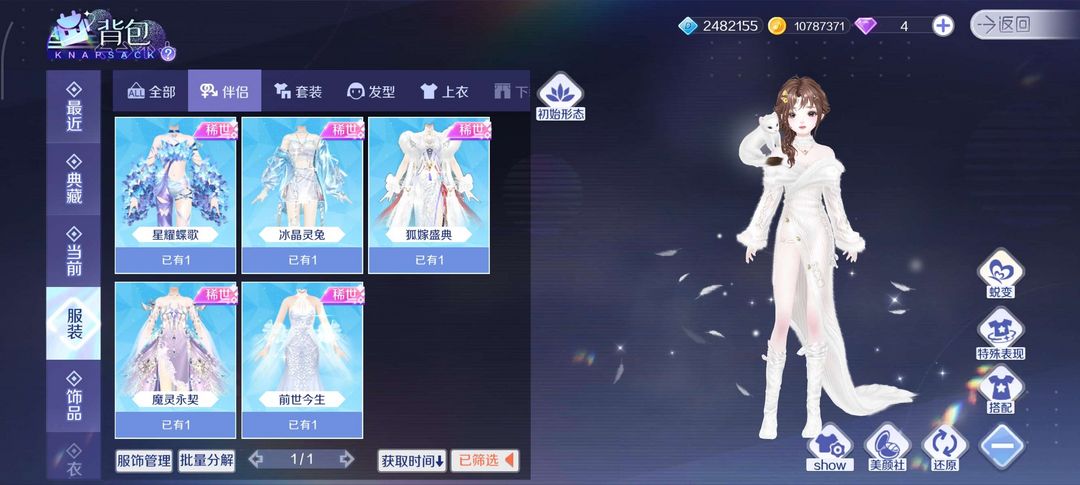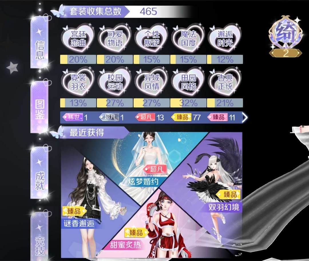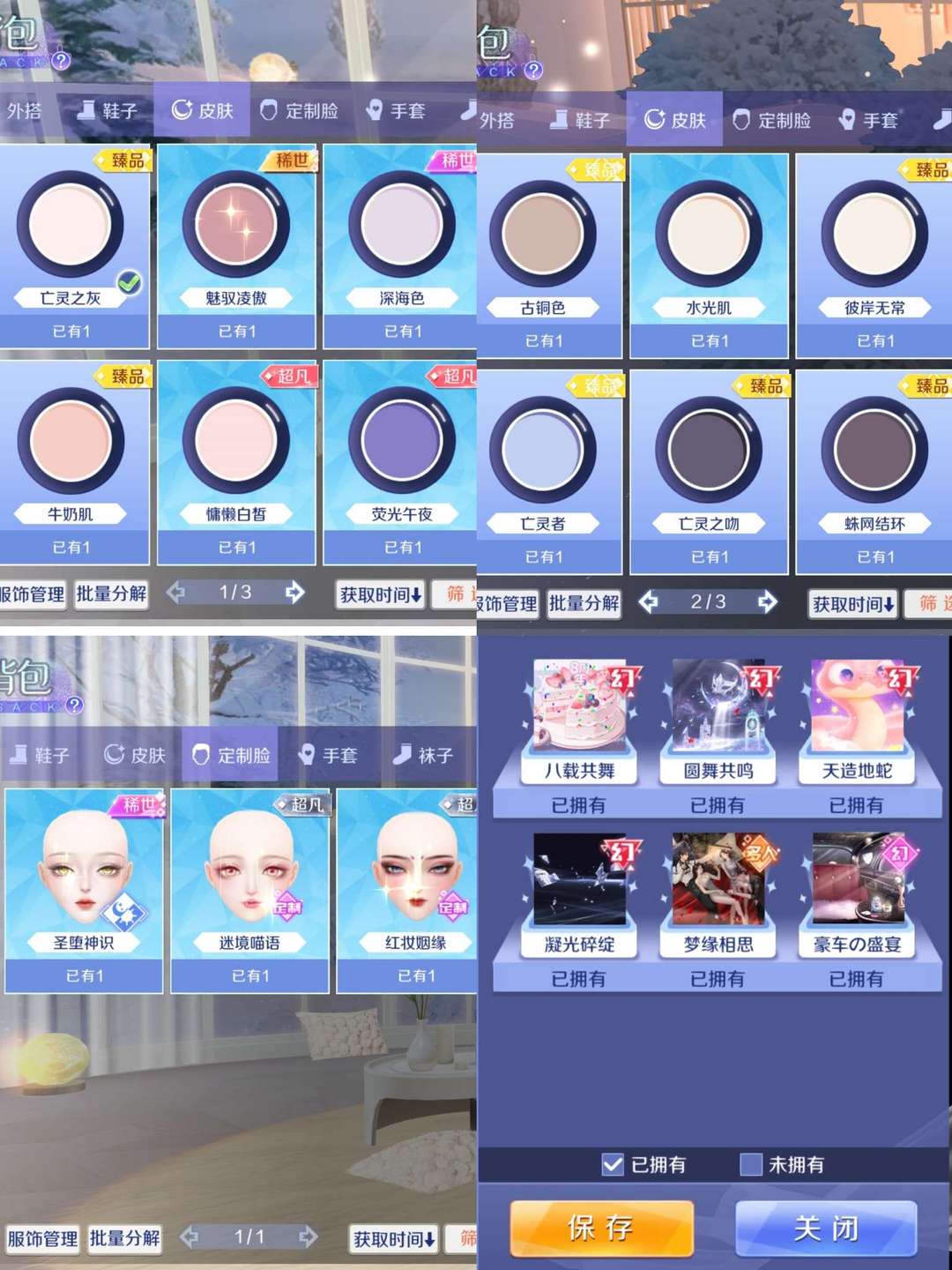 装备描述:稀释超凡臻品衣服共计174件 稀释五件 臻品以上徽章约78个 座椅4页约26个