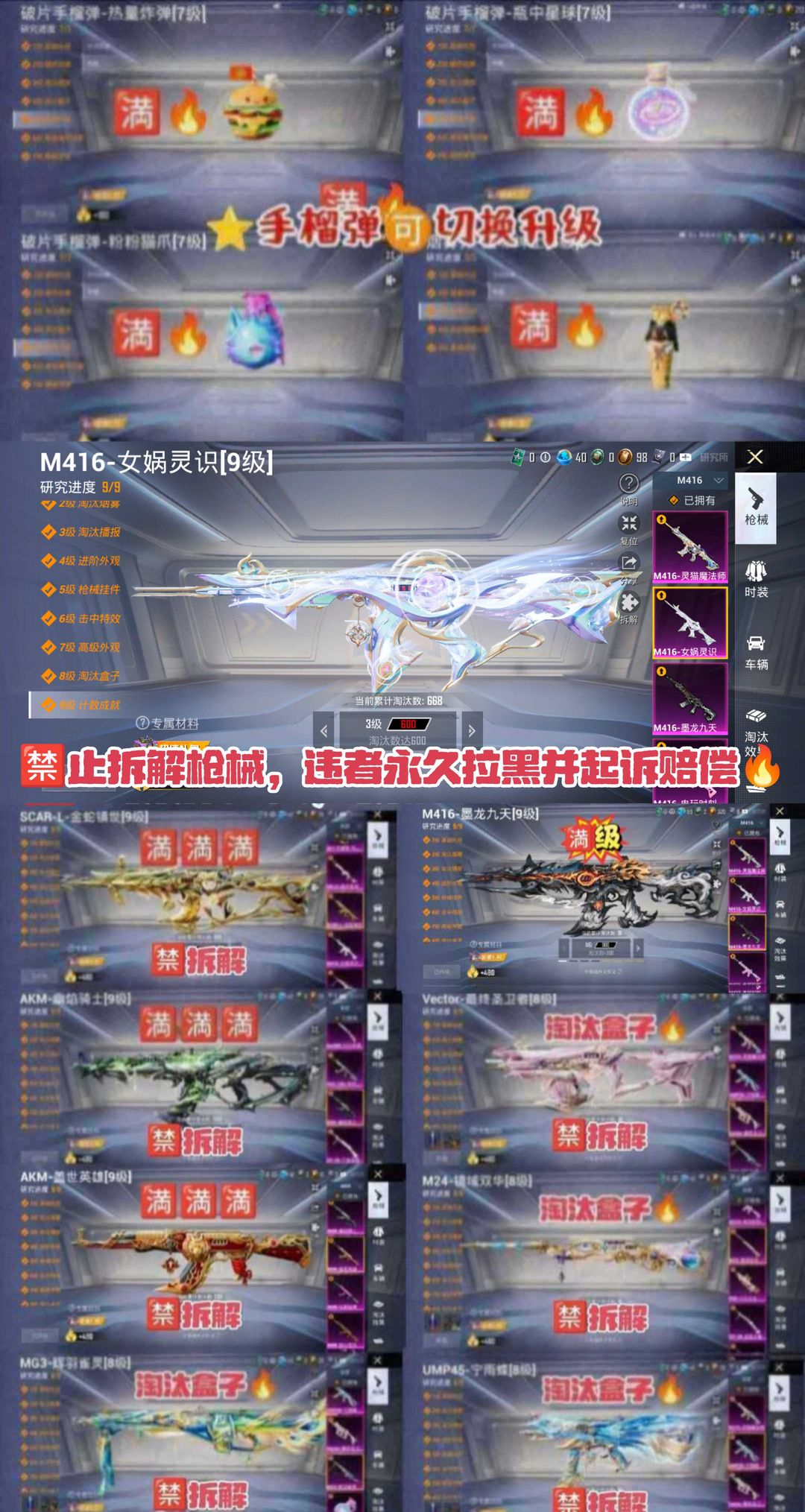 限制: 租号15次及以上 | 撤单率<30%才可租用此帐号装备描述:❤️拆解枪械载具永久拉黑,如果装备与图片描述不符请撤单,不要去拆解。 ❤️订单由平台客服处理,商家和号主无权处理,有问题咨询平台客服。 ⭐账号价值高,累计充值几十万,如开挂或使用第三方造成封号,按累计充值金额起诉赔偿,打官司追究到底。 ⭐⭐注意事项: 1、拆解枪械拉黑处理并上报封停平台账号!!! 2、禁止伤害队友、频繁逃跑游戏,违者永久拉黑。 3、如造成禁麦禁言,拉黑处理,请文明游戏。 ❤️温馨提示: 感谢各位老板的支持!!!协助登录后不跳转到游戏,可能是延迟,请手动去游戏登录界面查看有无登录。如果没登录,请关闭和平精英重新打开更新后再重新协助登录。