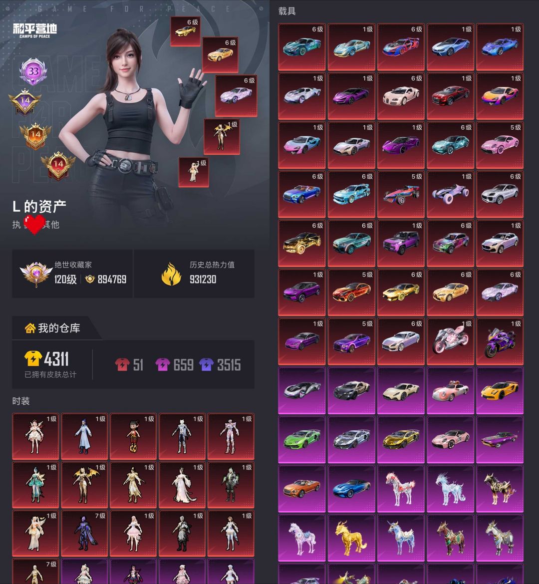 极品单字ID执:93万热力值2套满级红装满级木乃满级艾丽娅满素材第30吉运家衣柜枪库车库都是天花板