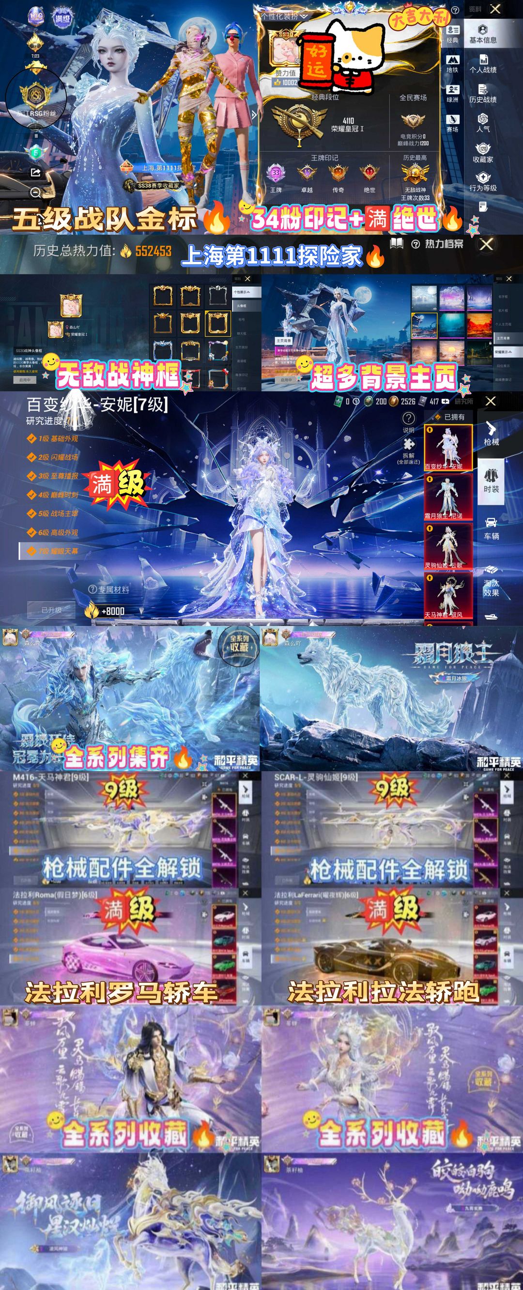 极品ID森么吖 ⑲套红装满级百变纱华安妮 老101霜狼驭风云歌 双满级法拉利55万热33车11升级车