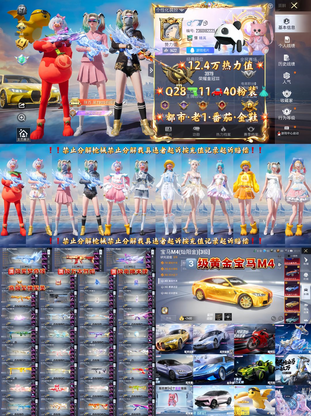 限制: 租号6次及以上 | 撤单率<50%才可租用此帐号装备描述:>>>>>>毁号,涉及毁坏虚拟财产罪及计算机安全罪,请文明游戏素质游戏,让我们共建美好租号平台>>>>>> 本游戏账号:荣耀皇冠Ⅲ段位,特效枪数量8个,粉装数量30套,载具数量8个,优质装备有: AKM-梦之光华, 套装-金属狂野, 套装-缤纷油彩, 套装-放客神游, 套装-馨动时刻, 套装-冰霜白皇, 套装-童趣迷兔, 春暖花开降落伞, 童趣迷兔降落伞, 天之羽翼降落伞, 阿狸红降落伞, 童趣迷兔飞行器, 都市猎人降落伞, 合金龙骨(绿), 甜蜜菠萝头盔(3级), 深海小丑鱼头盔(3级), 童趣迷兔头盔(3级), 天之羽翼头盔(2级), 童趣迷兔头盔(2级)等,供您畅选,感受良好游戏体验! 注意事项: A.游戏过程中请不要恶意挂机或者不文明发言 B.恶意挂机、顶号等行为将被拉黑无法再次下单 C.进入游戏后中途请勿退出登陆,否则无法再次上号 D.部分账号由于异地登录可能会出现密码错误提示,通常再尝试5-6次后可上号 |||||||||喜欢本账号请点 ☆收藏☆ 方便下次租用,谢谢光临惠顾|||||||||