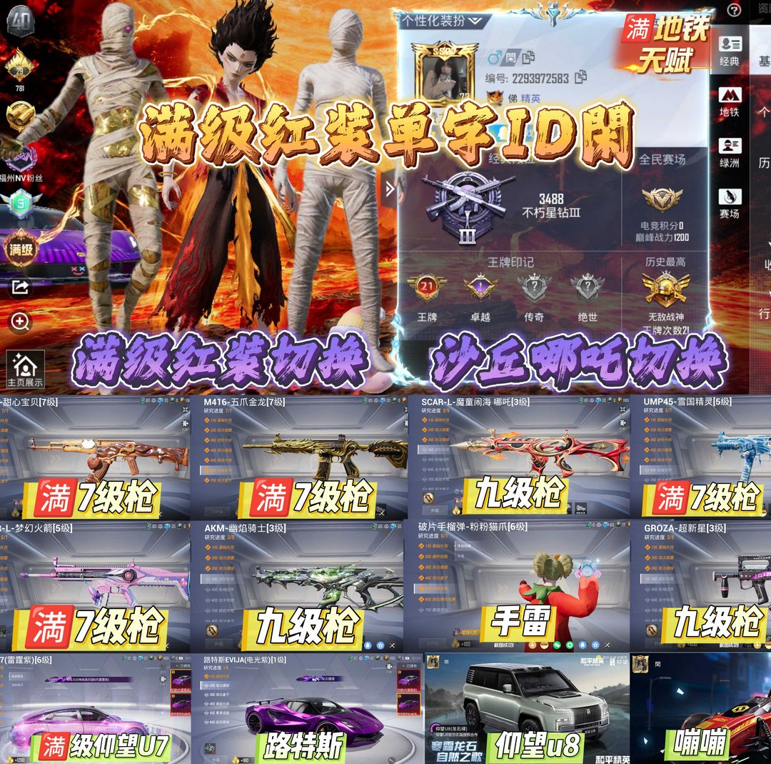 单字ID 满级图卡盟/哪吒/仰望u7满级车/甜心宝贝/五爪金龙/极品素材号