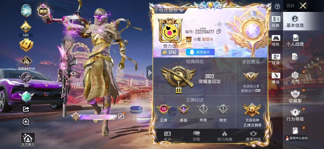 包天便宜 战神框 满级红装木乃伊 105套粉装 45枪 23载具车 7级超新星 2级迈凯伦