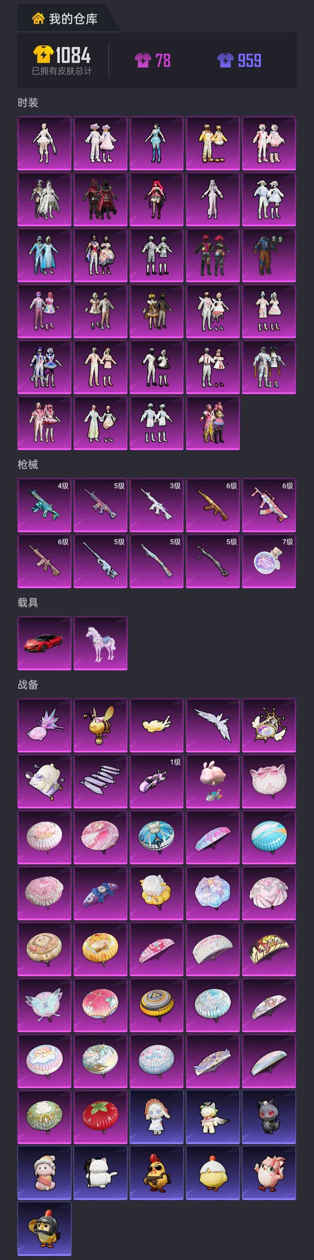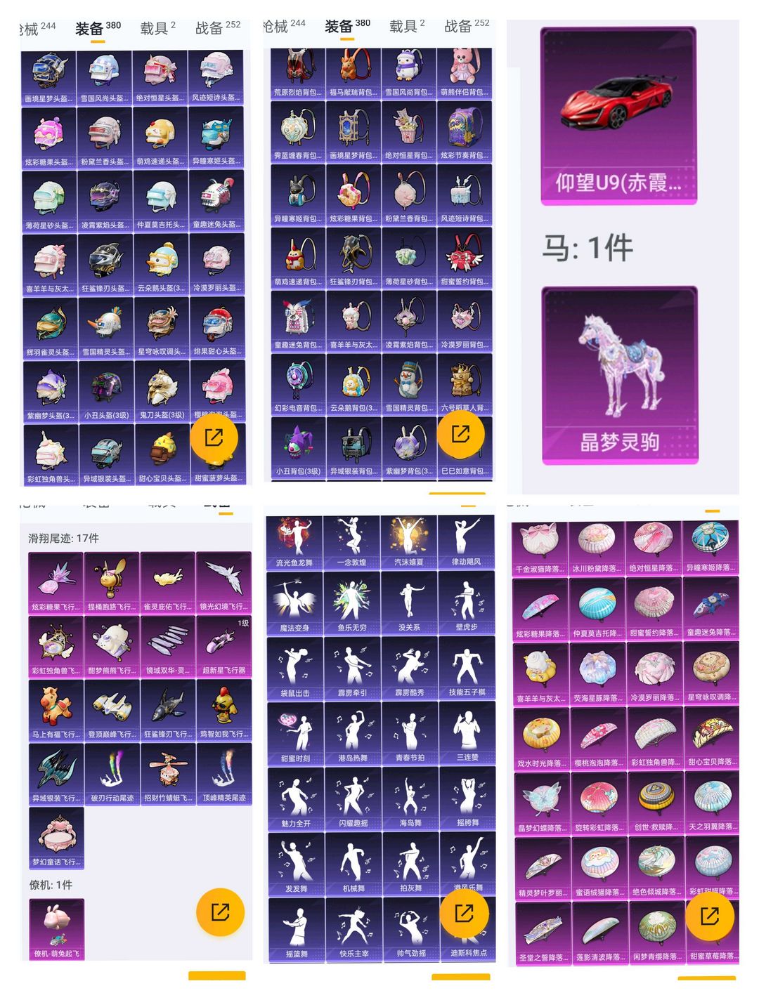 限制: 租号10次及以上 | 撤单率<49%才可租用此帐号装备描述:禁止开挂,禁止坐挂车,禁止骂人,禁止分解枪械等~谢谢宝宝们~ 套装206个,粉套29个, 枪皮244个,特效枪10个 载具皮肤2个 装备380个,三级头50个,三级包57个 滑翔尾迹17个,僚机1个,伙伴9个,动作134个 祝您游戏愉快~