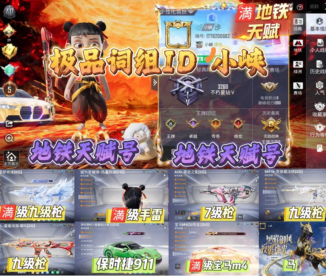 极品ID 小峡满地铁天赋/星梦奇缘/薄荷可可燃烧瓶/宝马M4/番茄套