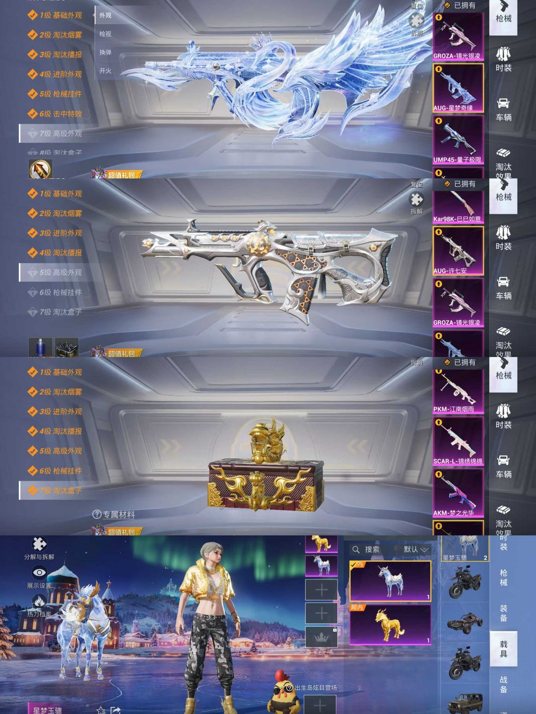 6级星梦奇缘AUG❤️怪诞乔克小丑满五爪金龙赵灵儿梦幻火箭追光服❤️金鞋寒蝎1红9粉13枪2马