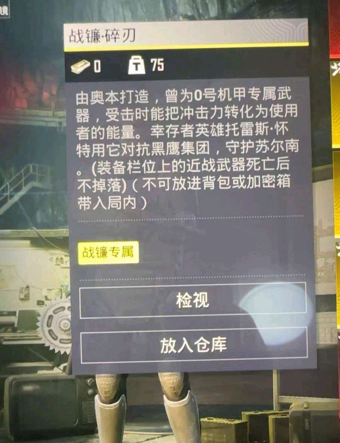 装备描述:地铁逃生满天赋 传世武器战镰碎刃 1,500万存款 文明 限定头像框 有两把金色a ug