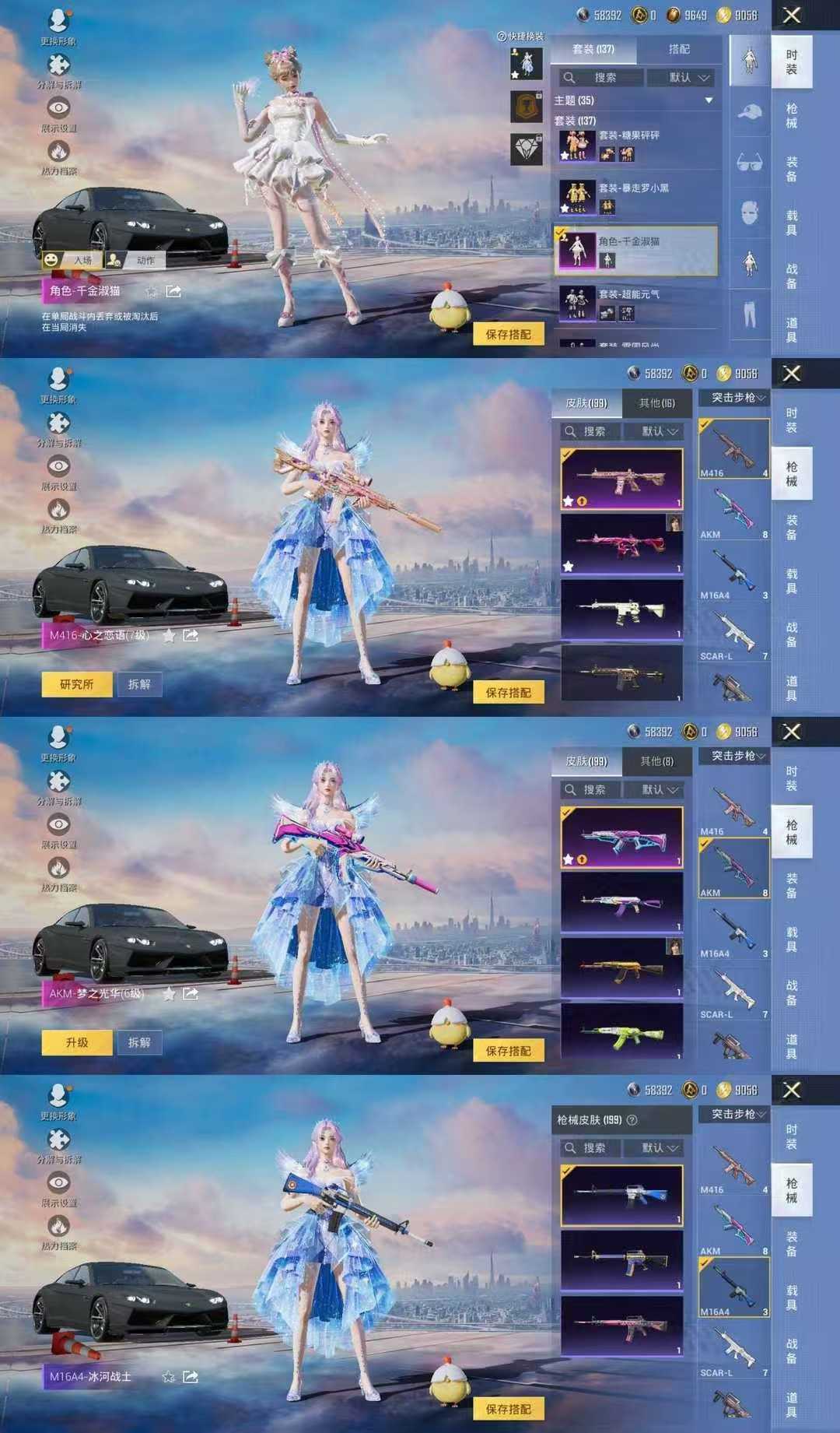 地铁满天赋5粉装8粉枪1载具⚡3级AUG星梦奇缘M416心之恋语MK14甜梦熊击梦幻火箭兰博基尼