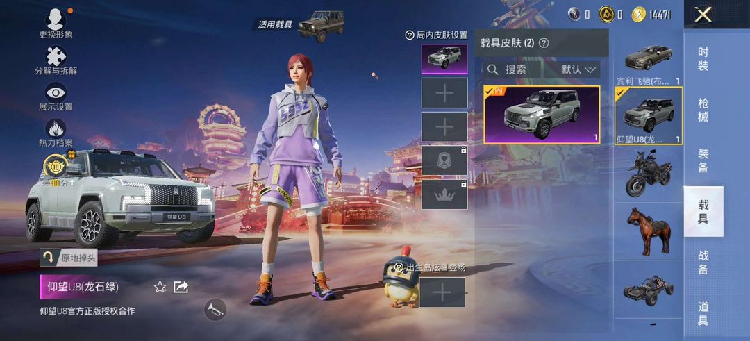 宾利飞驰,仰望U8,闪电轻猫,0个粉装,1把特效枪,2个载具,